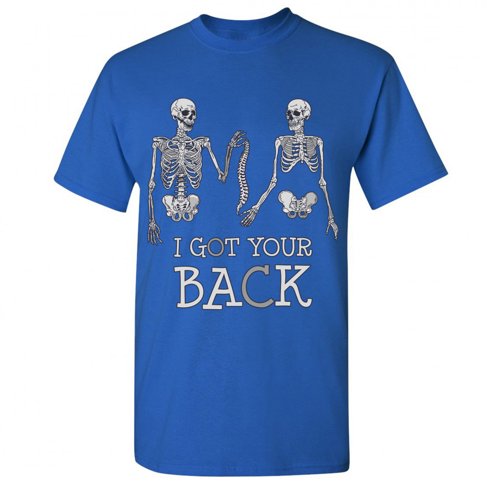 I GOT YOUR BACK t-shirt happy halloween spooky skeletons men's tee royal blue