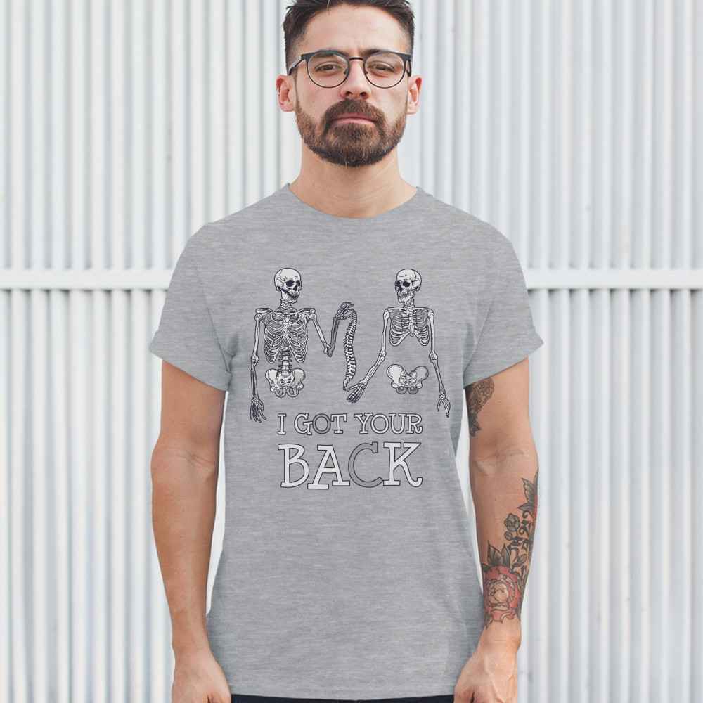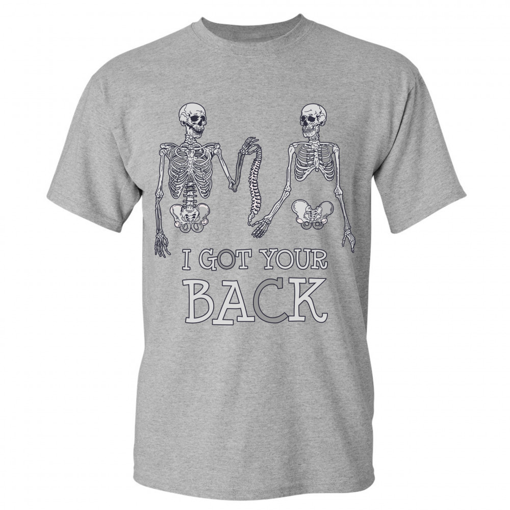 I GOT YOUR BACK t-shirt happy halloween spooky skeletons men's tee gray