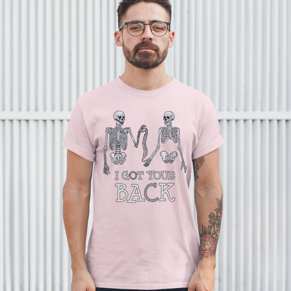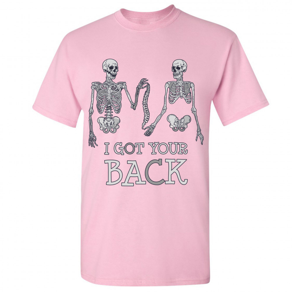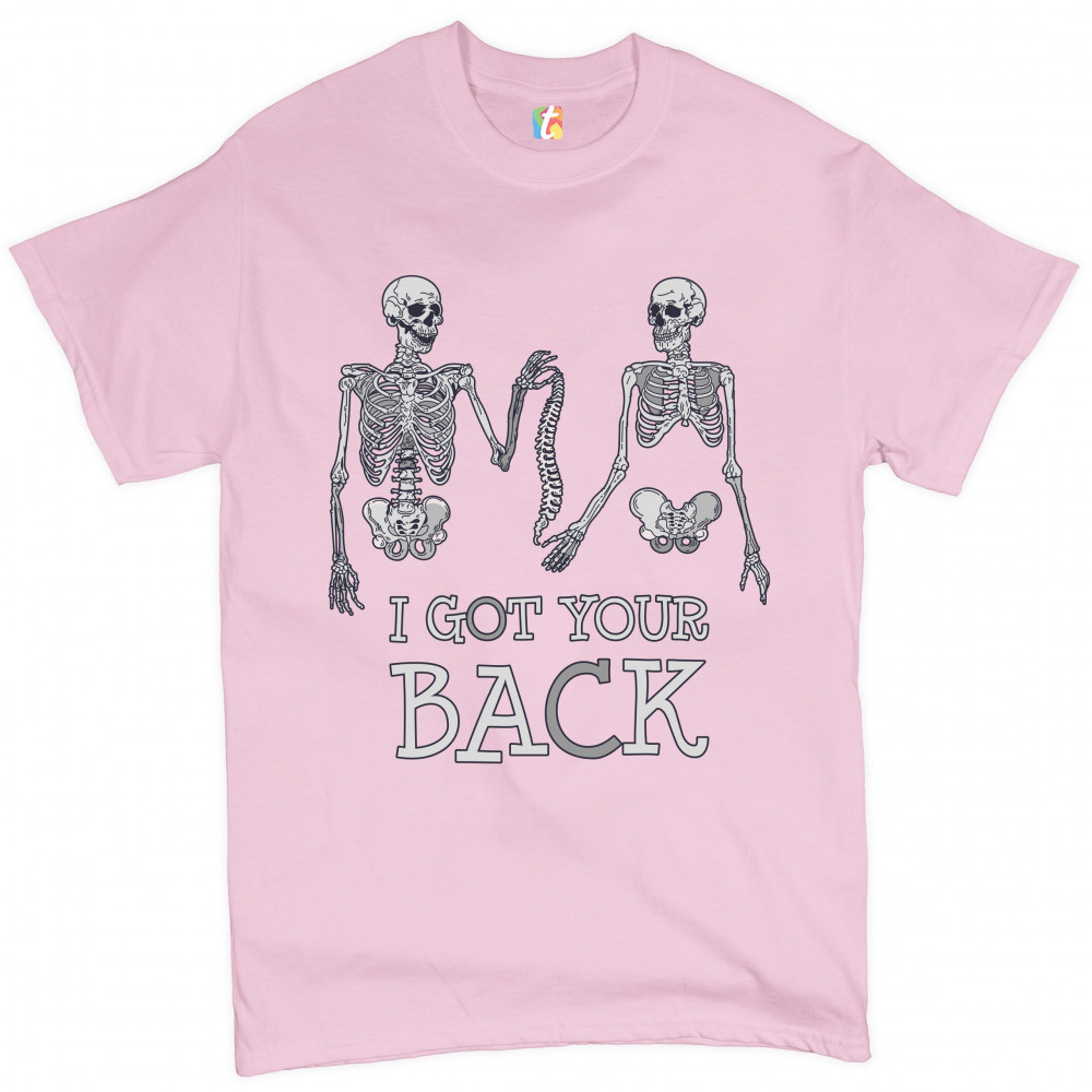 I GOT YOUR BACK t-shirt happy halloween spooky skeletons men's tee light pink