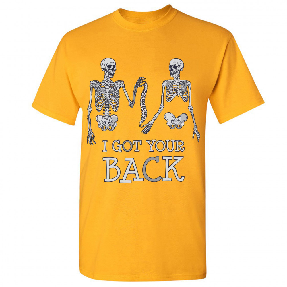 I GOT YOUR BACK t-shirt happy halloween spooky skeletons men's tee yellow