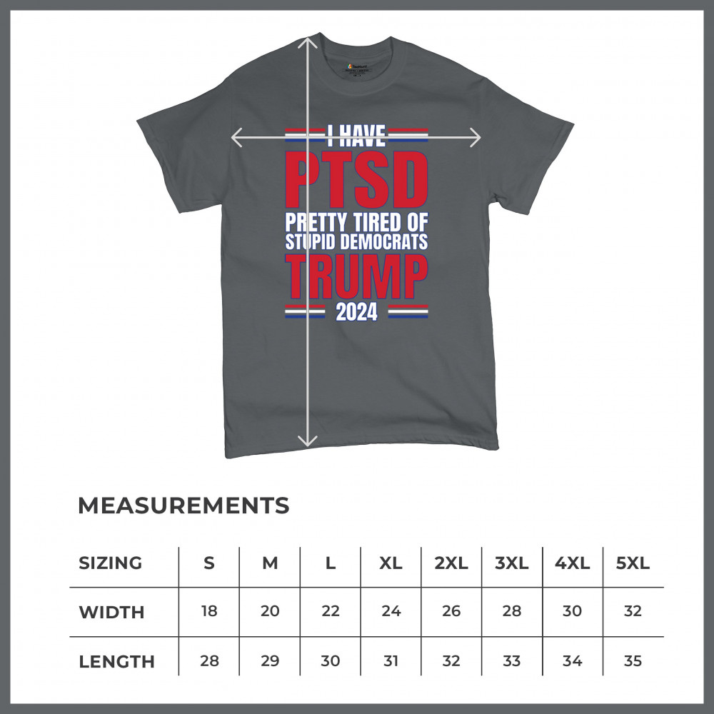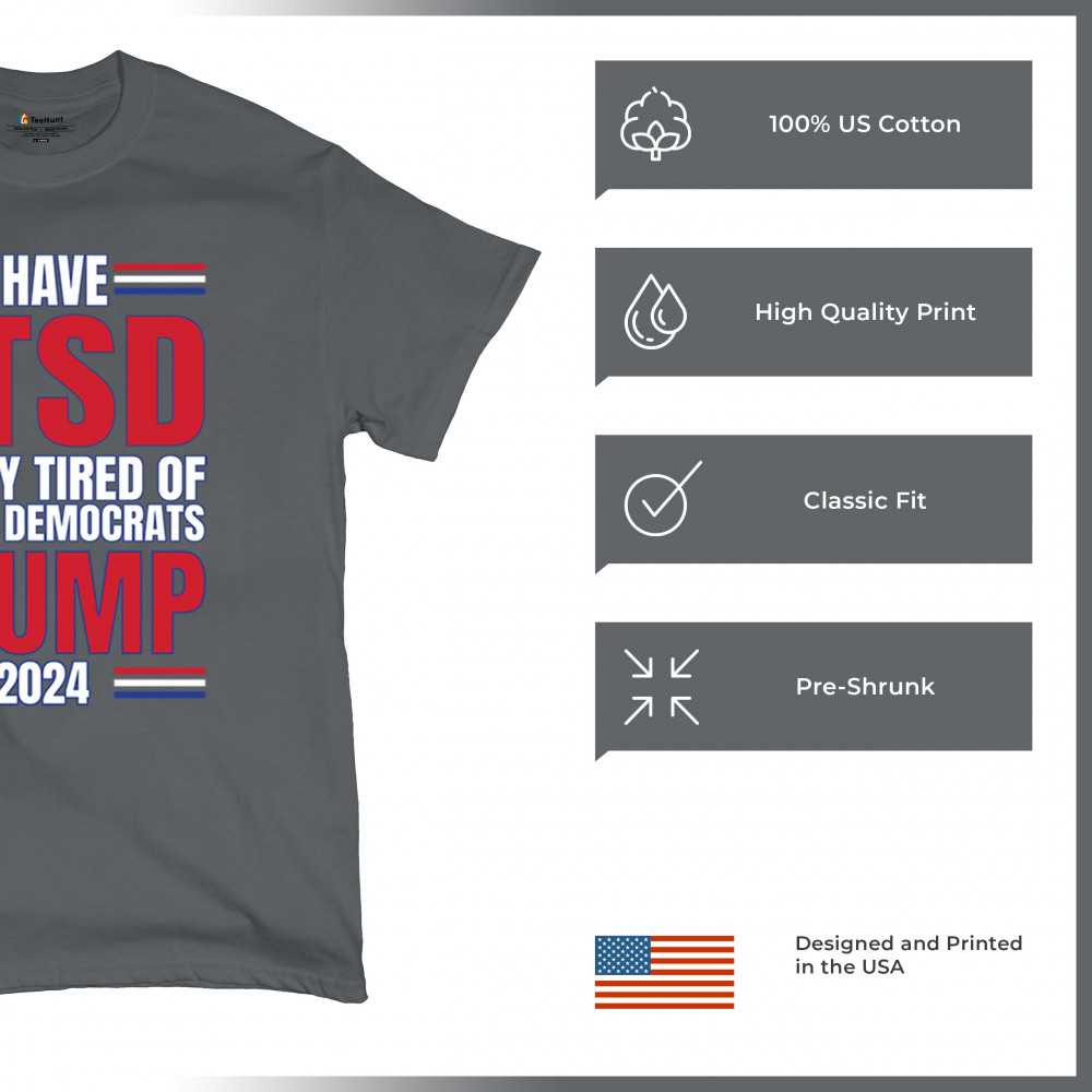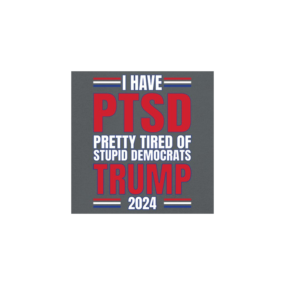 Stand up against the political chaos with "I have PTSD Pretty Tired of Democrats, Trump 2024" tee. As a dedicated supporter of conservative values, join the Trump Train to victory. Trust in God, not government, and reject the traitors to our nation. Let the American flag symbolize our resilience as we fight for President Trump and the future of America.