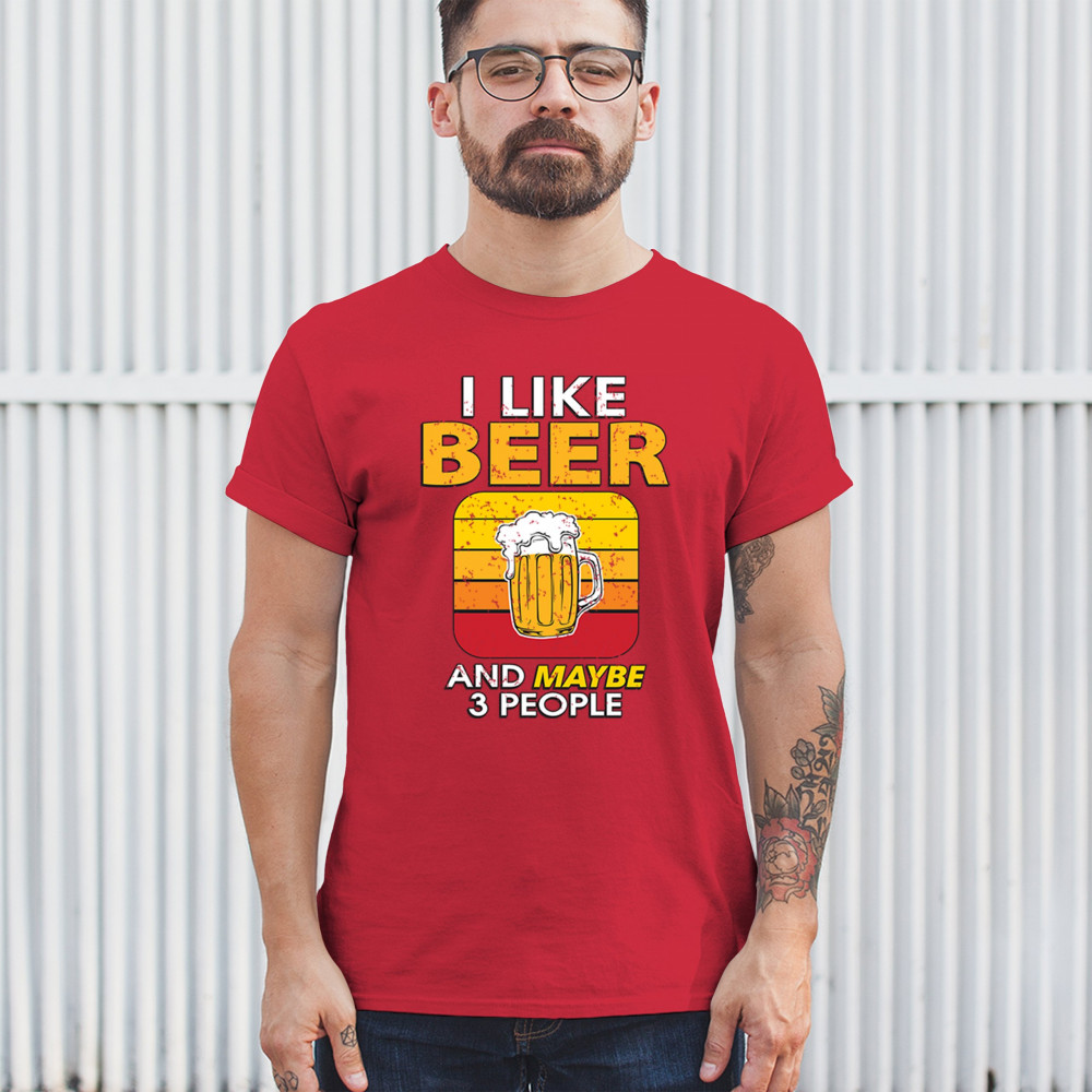 Bold, funny, and just the right amount of antisocial—this design features “I Like Beer and Maybe 3 People†with a foamy beer mug and retro pub vibes. Perfect for beer fans with dry humor and party grumps who prefer cold brews over crowds. Great for bar nights, Oktoberfest, or everyday mood declarations.