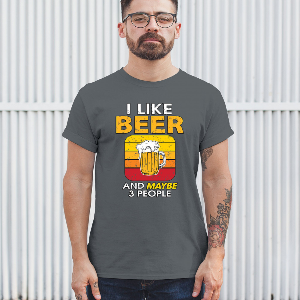 Bold, funny, and just the right amount of antisocial—this design features “I Like Beer and Maybe 3 People†with a foamy beer mug and retro pub vibes. Perfect for beer fans with dry humor and party grumps who prefer cold brews over crowds. Great for bar nights, Oktoberfest, or everyday mood declarations.