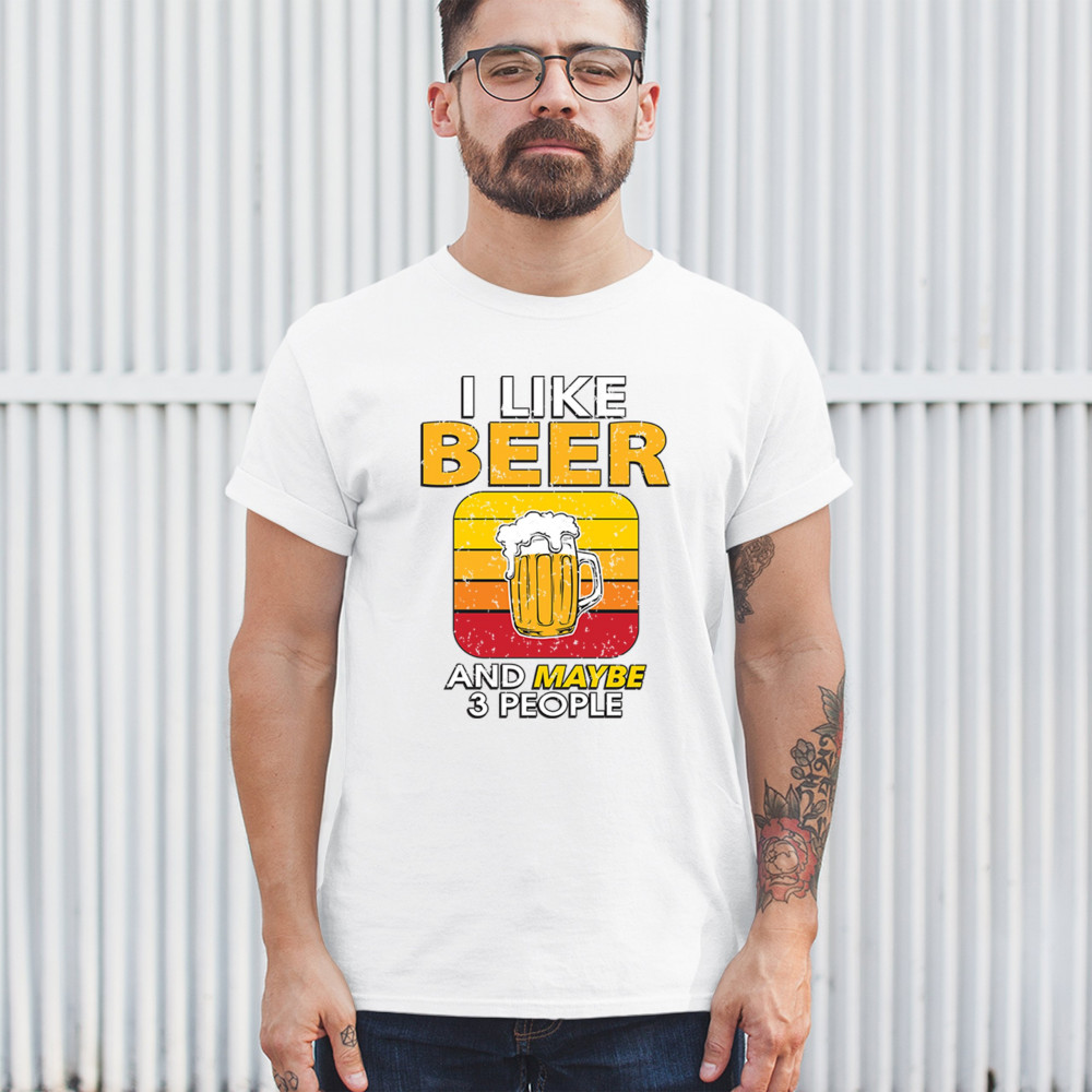 Bold, funny, and just the right amount of antisocial—this design features “I Like Beer and Maybe 3 People†with a foamy beer mug and retro pub vibes. Perfect for beer fans with dry humor and party grumps who prefer cold brews over crowds. Great for bar nights, Oktoberfest, or everyday mood declarations.