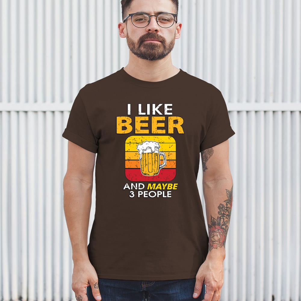 Bold, funny, and just the right amount of antisocial—this design features “I Like Beer and Maybe 3 People†with a foamy beer mug and retro pub vibes. Perfect for beer fans with dry humor and party grumps who prefer cold brews over crowds. Great for bar nights, Oktoberfest, or everyday mood declarations.