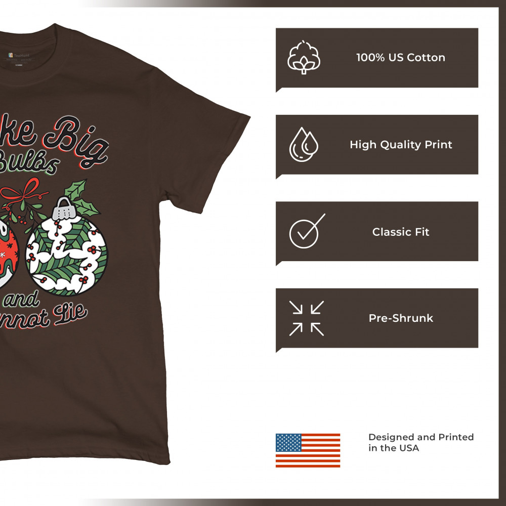 Light up the holiday season with our "I Like Big Bulbs" design, a playful and festive addition to any celebration. This unique design is perfect for cozy family gatherings, office parties, or Secret Santa exchanges, adding a humorous twist to your holiday wardrobe. Ideal for matching group outfits or gift exchanges, it captures the Christmas spirit in a fun and memorable way. From jolly gatherings to festive gift ideas, this design brings cheer to every holiday event.