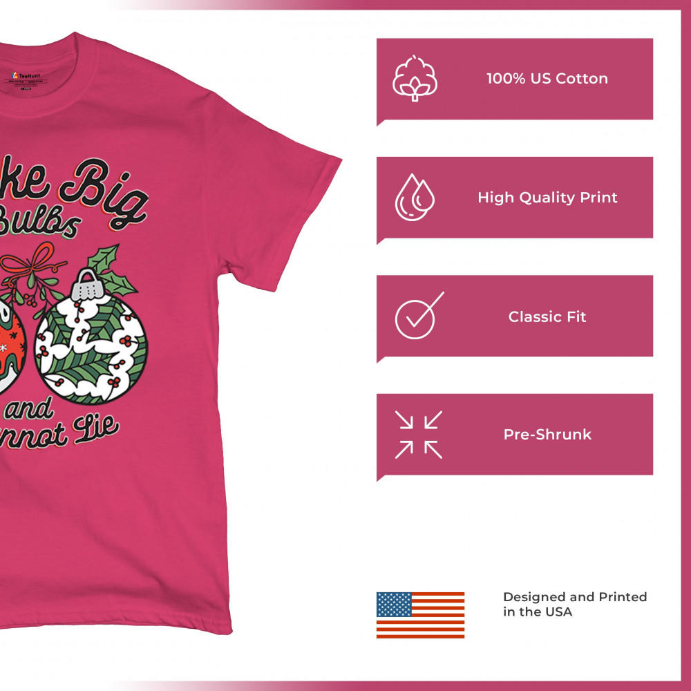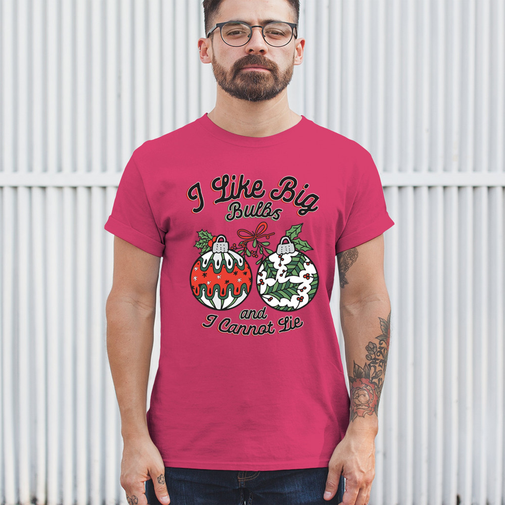 Light up the holiday season with our "I Like Big Bulbs" design, a playful and festive addition to any celebration. This unique design is perfect for cozy family gatherings, office parties, or Secret Santa exchanges, adding a humorous twist to your holiday wardrobe. Ideal for matching group outfits or gift exchanges, it captures the Christmas spirit in a fun and memorable way. From jolly gatherings to festive gift ideas, this design brings cheer to every holiday event.