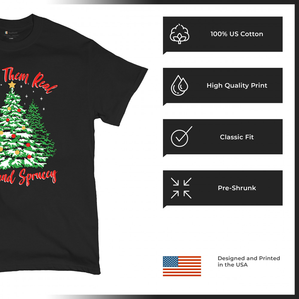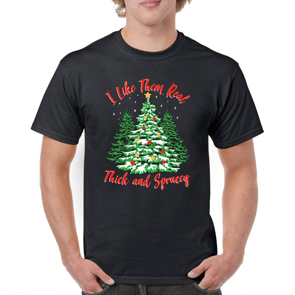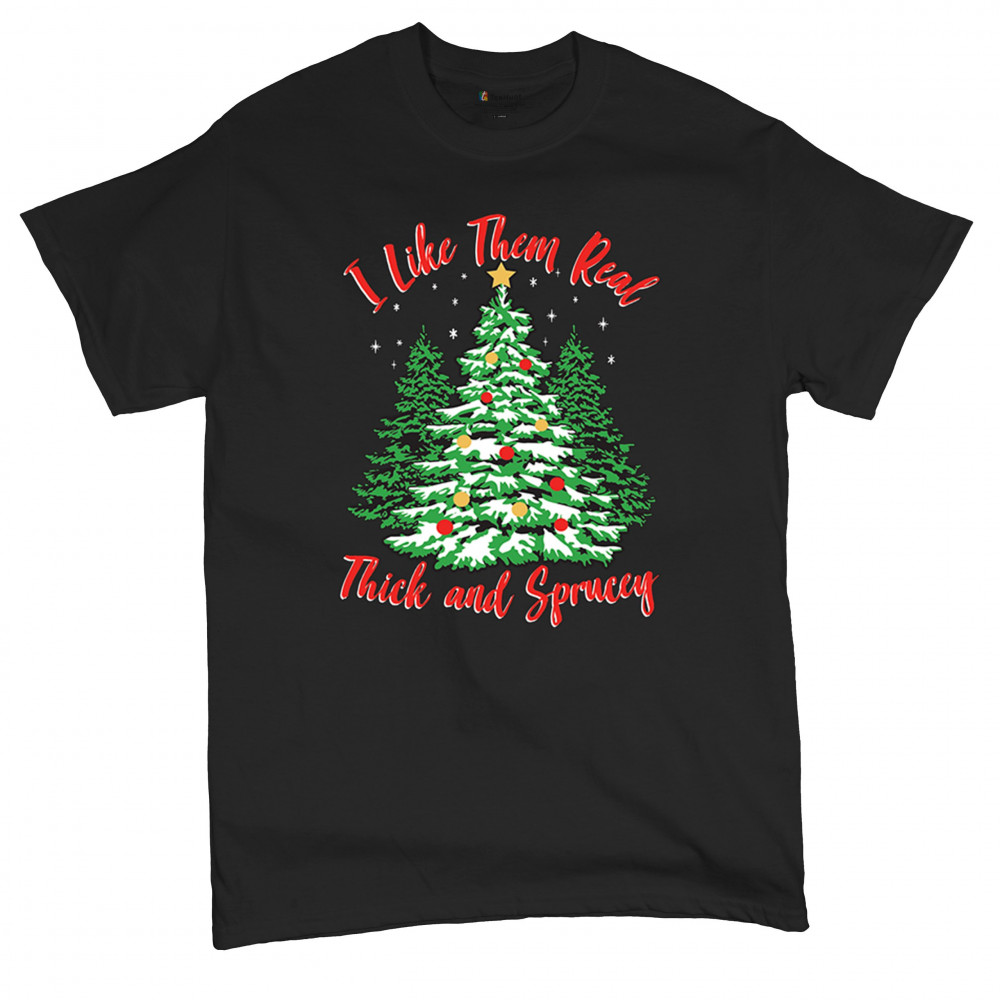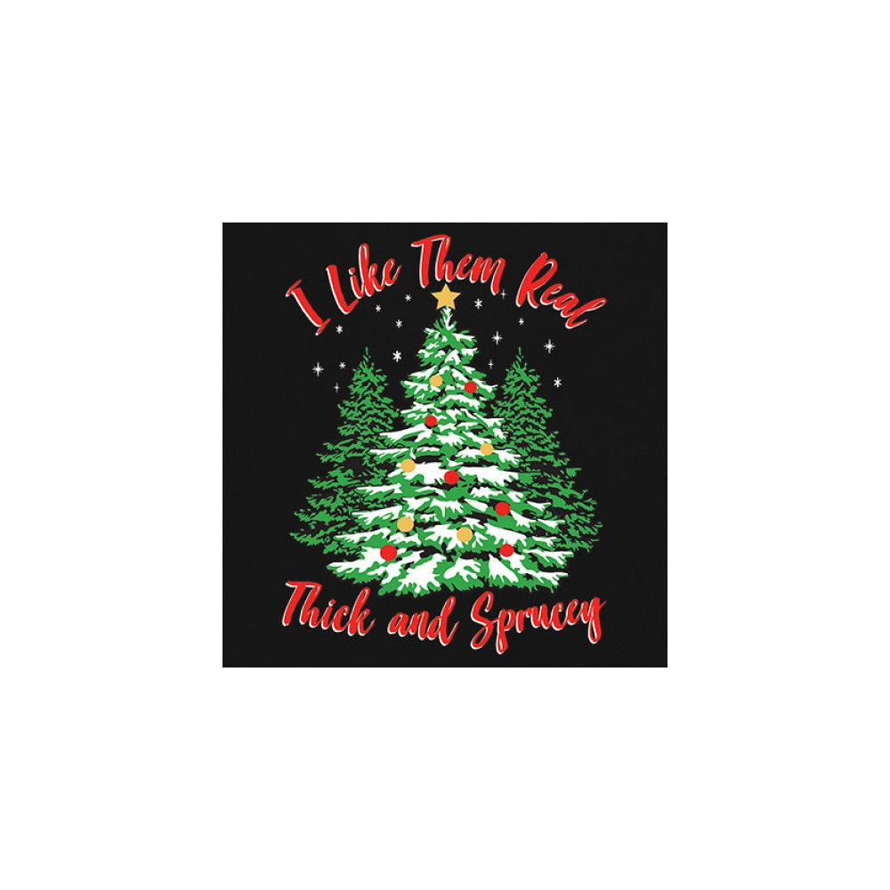 Enjoy the holiday season with our "I Like Them Real, Thick, and Sprucey" Christmas tree design, perfect for festive gatherings and holiday gifting!