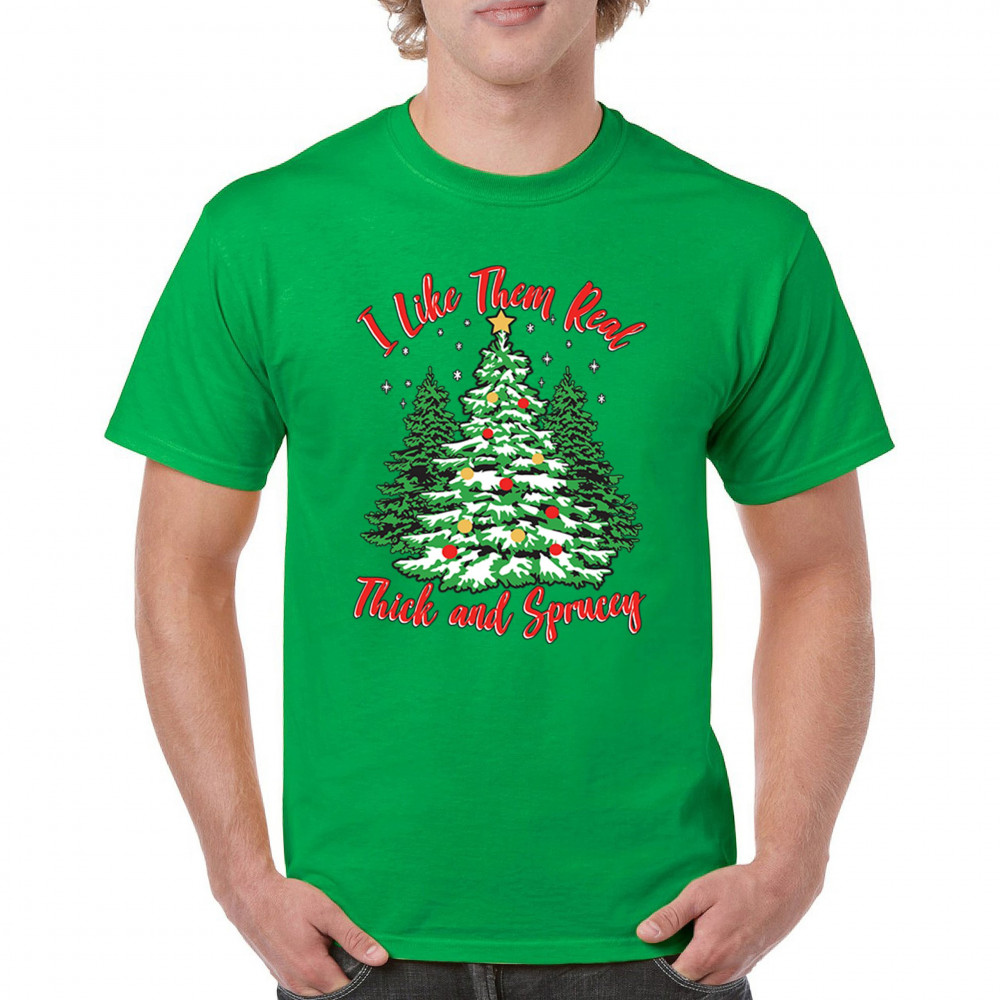 Enjoy the holiday season with our "I Like Them Real, Thick, and Sprucey" Christmas tree design, perfect for festive gatherings and holiday gifting!