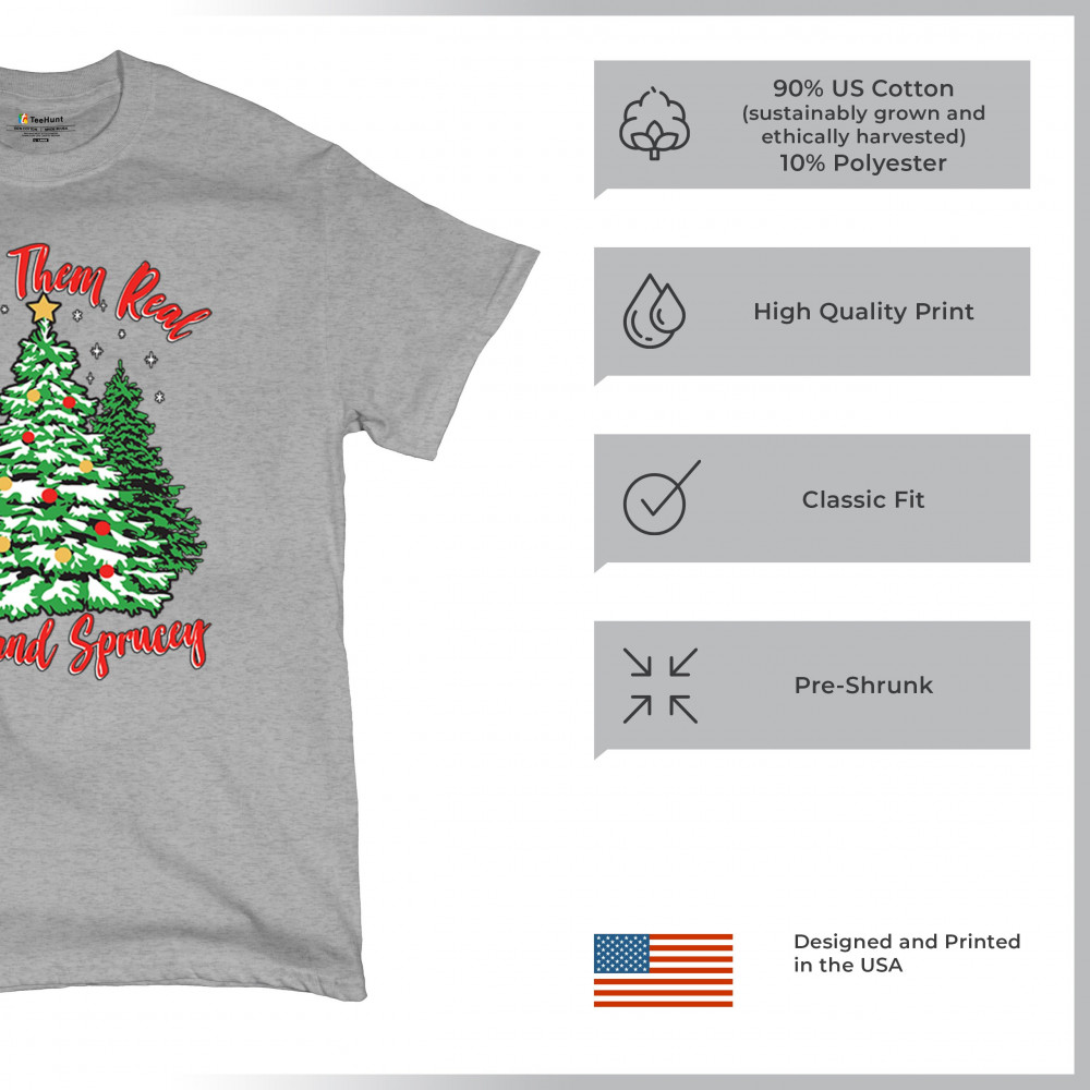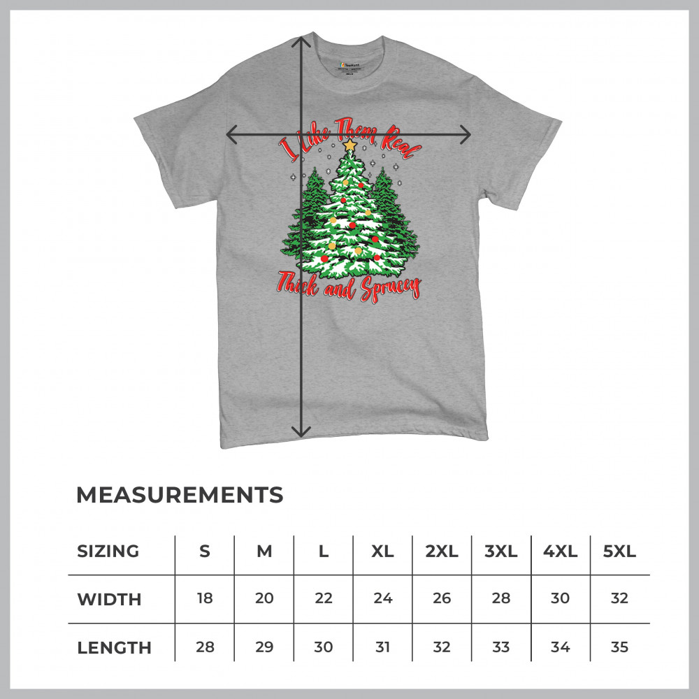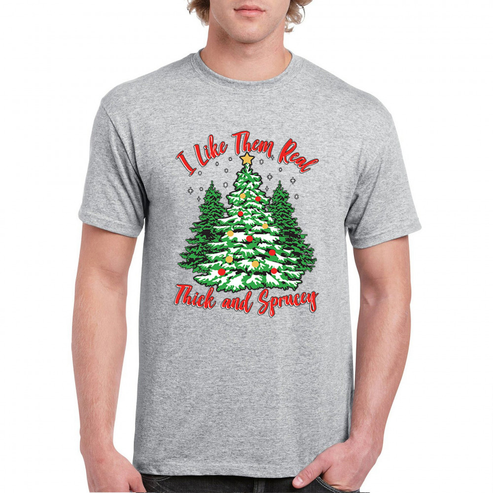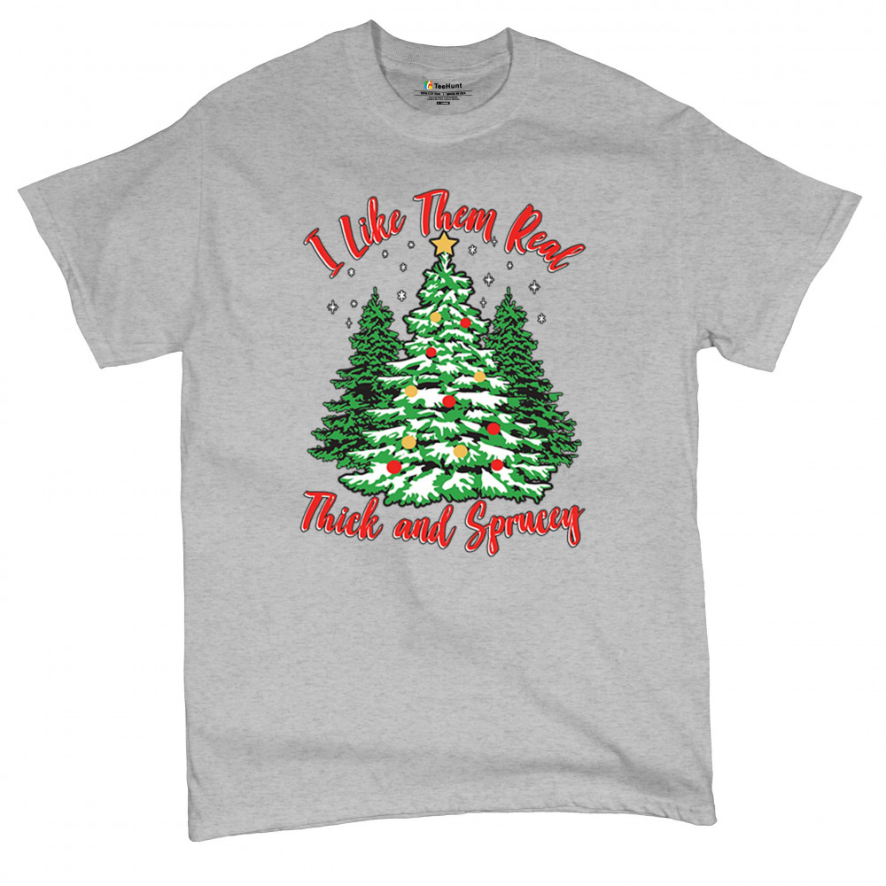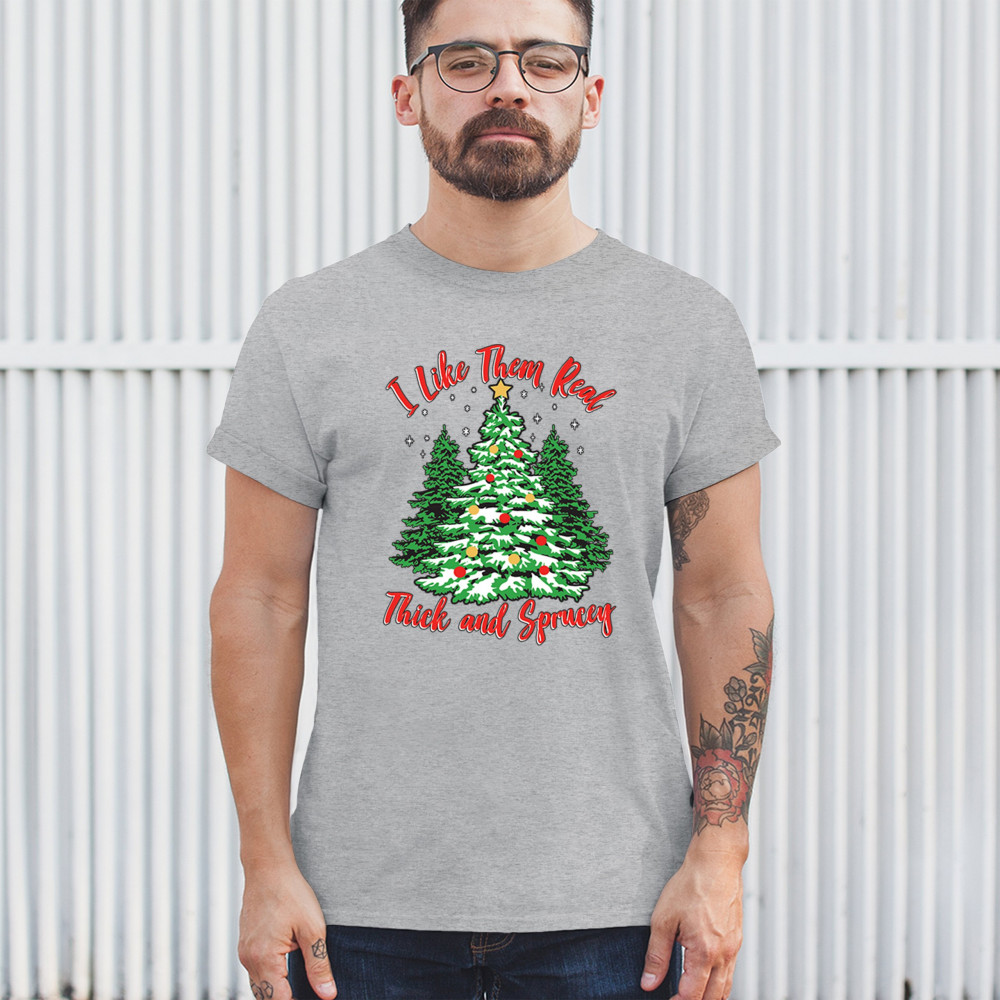 Enjoy the holiday season with our "I Like Them Real, Thick, and Sprucey" Christmas tree design, perfect for festive gatherings and holiday gifting!