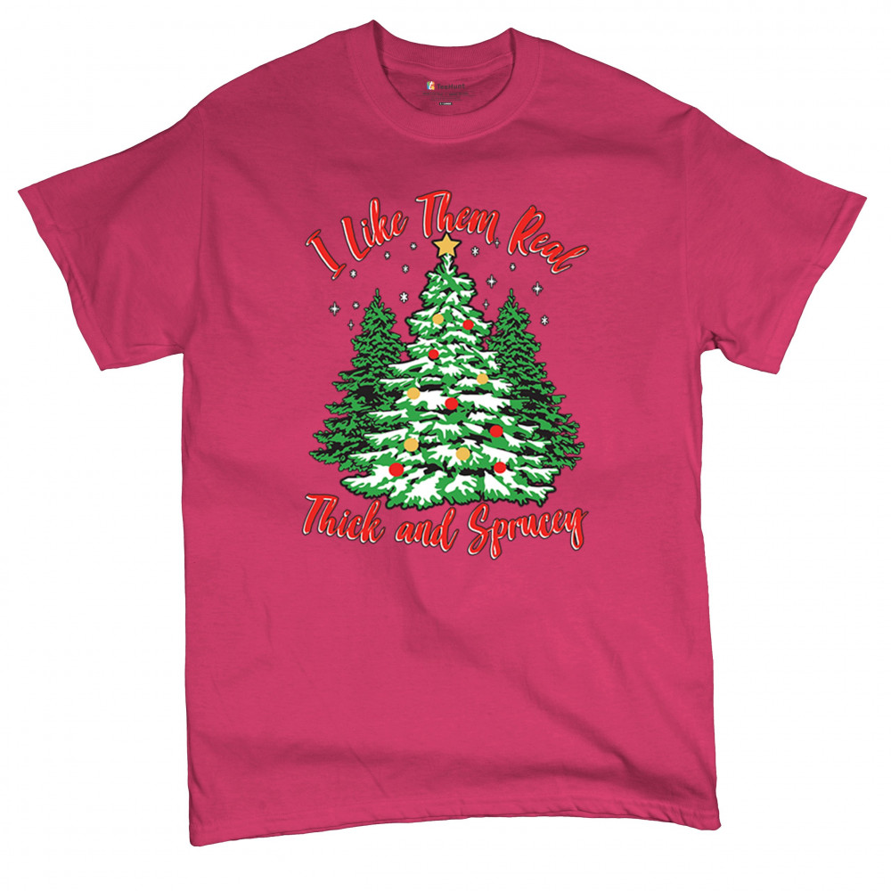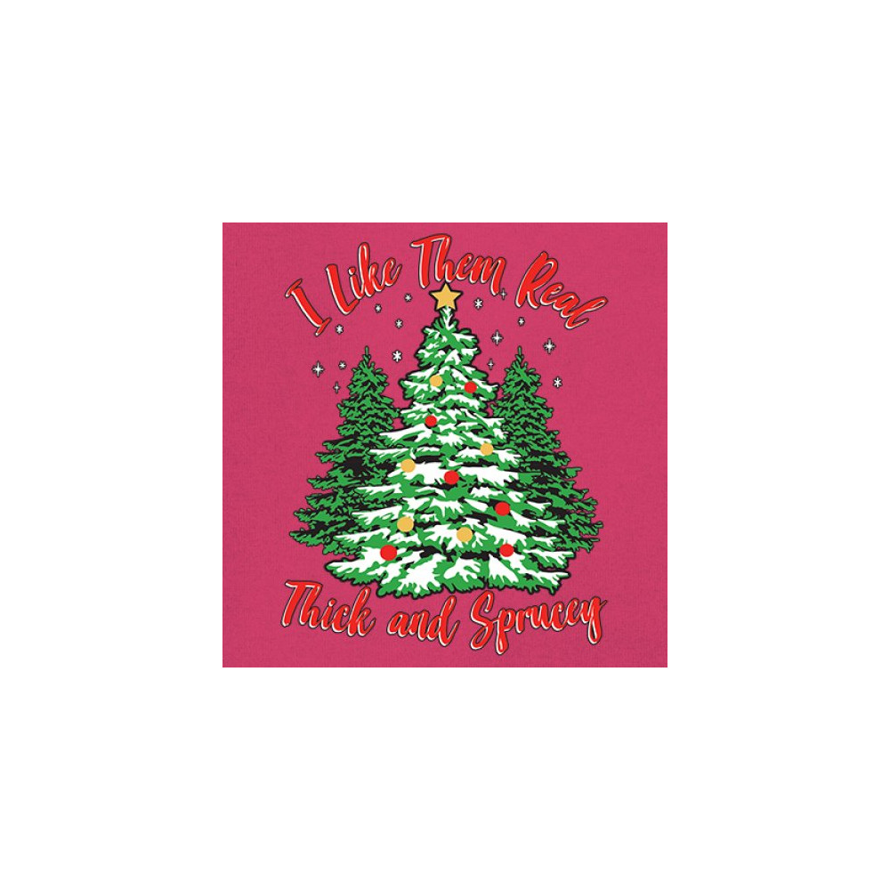 Enjoy the holiday season with our "I Like Them Real, Thick, and Sprucey" Christmas tree design, perfect for festive gatherings and holiday gifting!