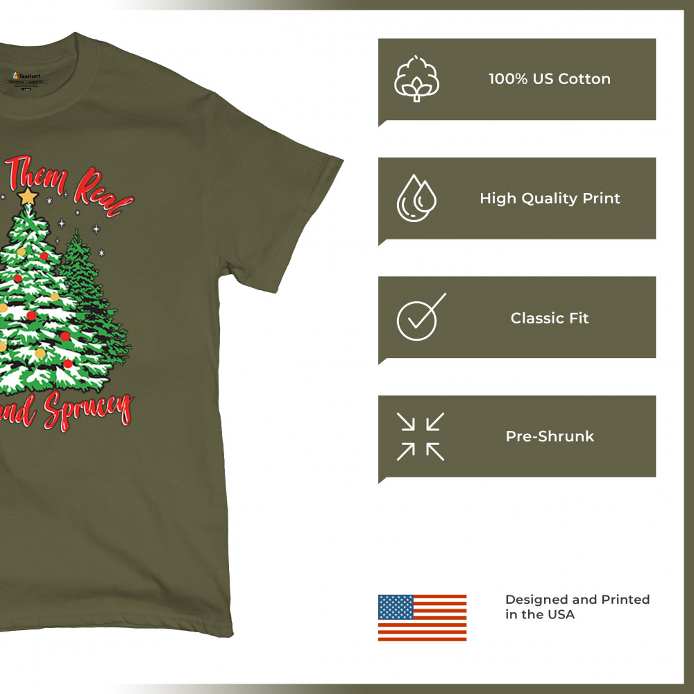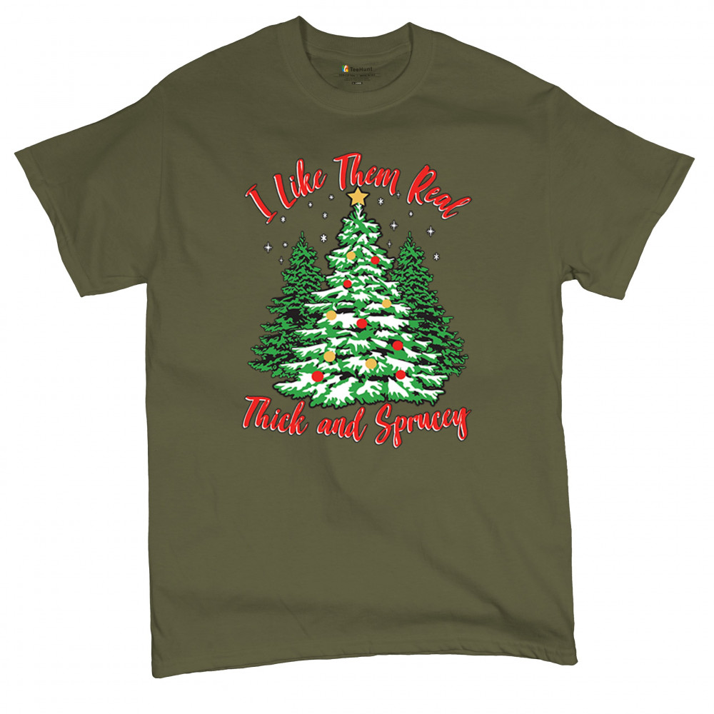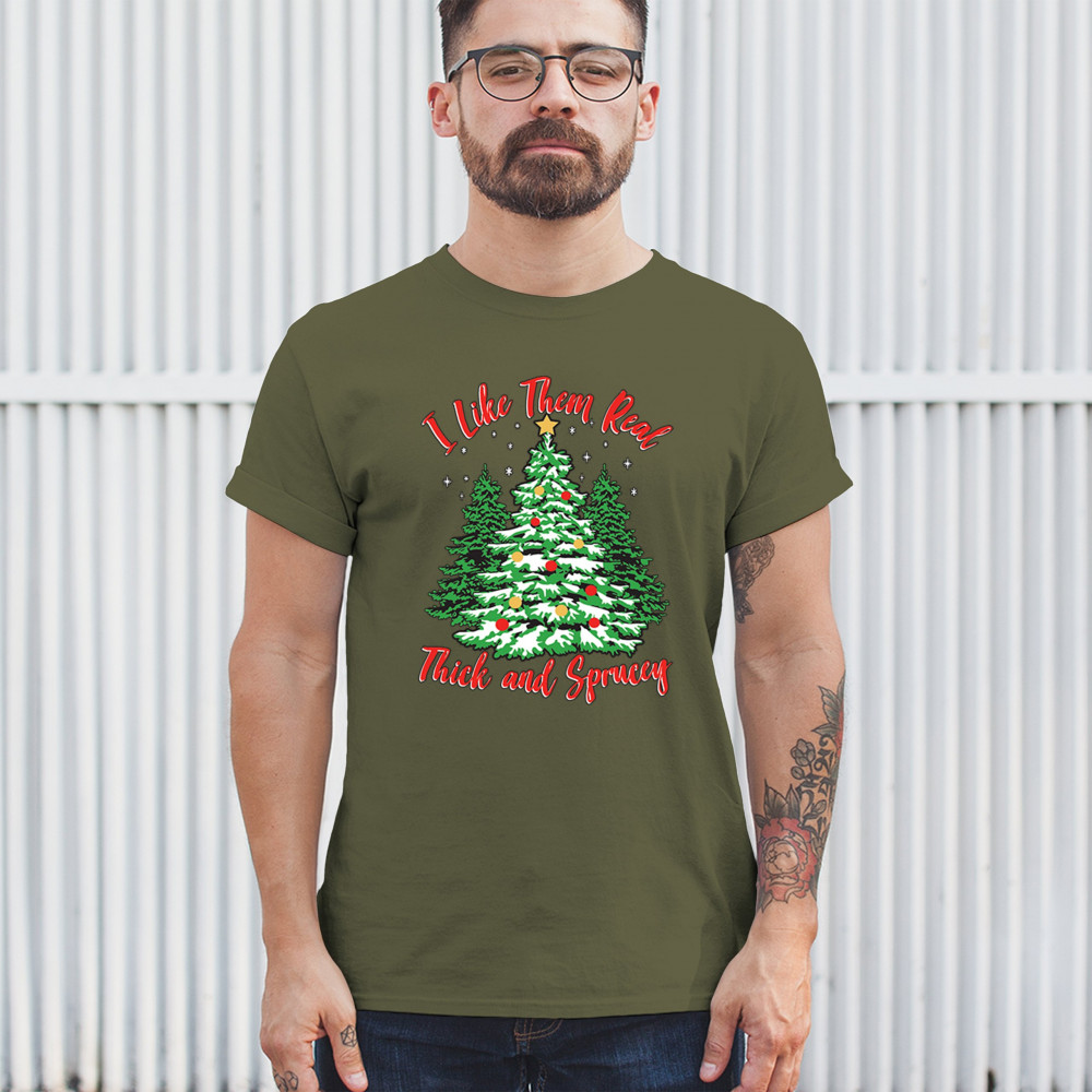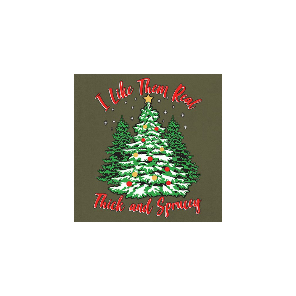Enjoy the holiday season with our "I Like Them Real, Thick, and Sprucey" Christmas tree design, perfect for festive gatherings and holiday gifting!