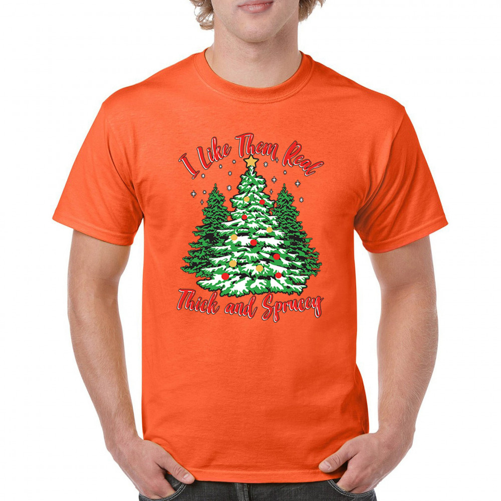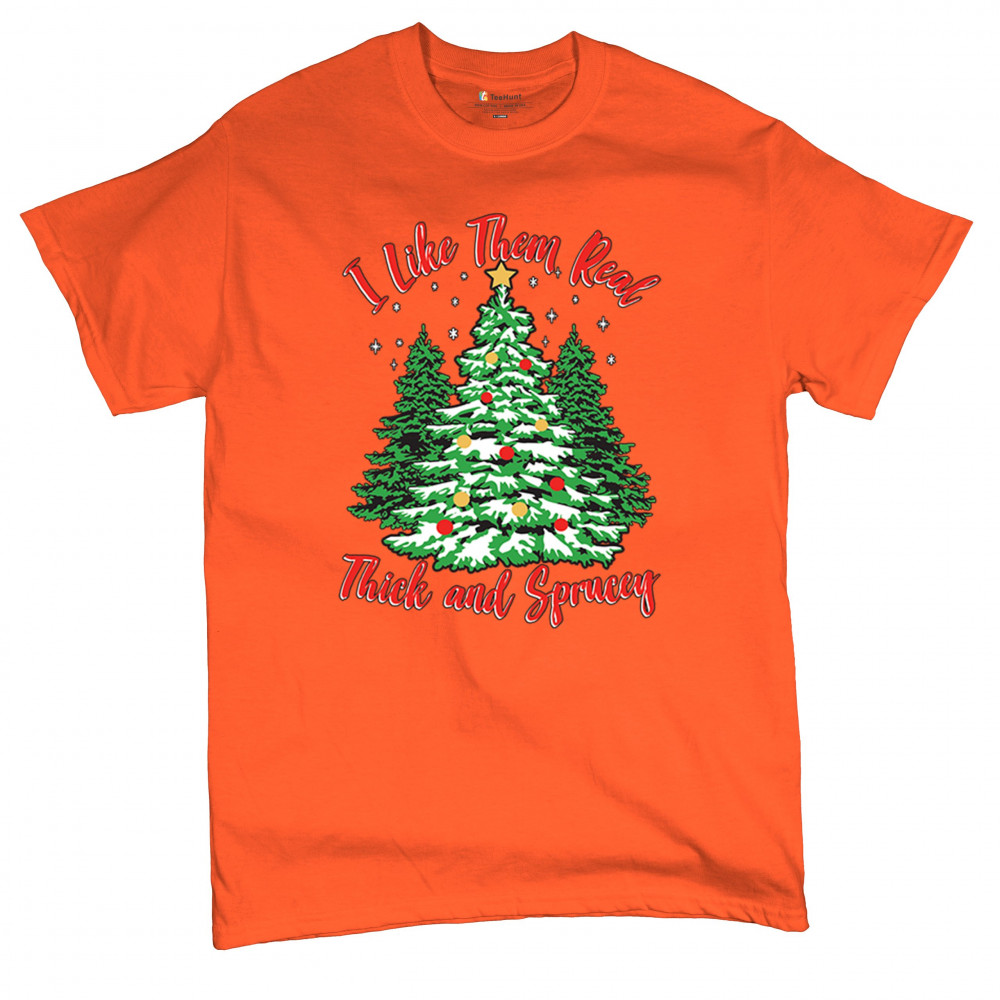 Enjoy the holiday season with our "I Like Them Real, Thick, and Sprucey" Christmas tree design, perfect for festive gatherings and holiday gifting!