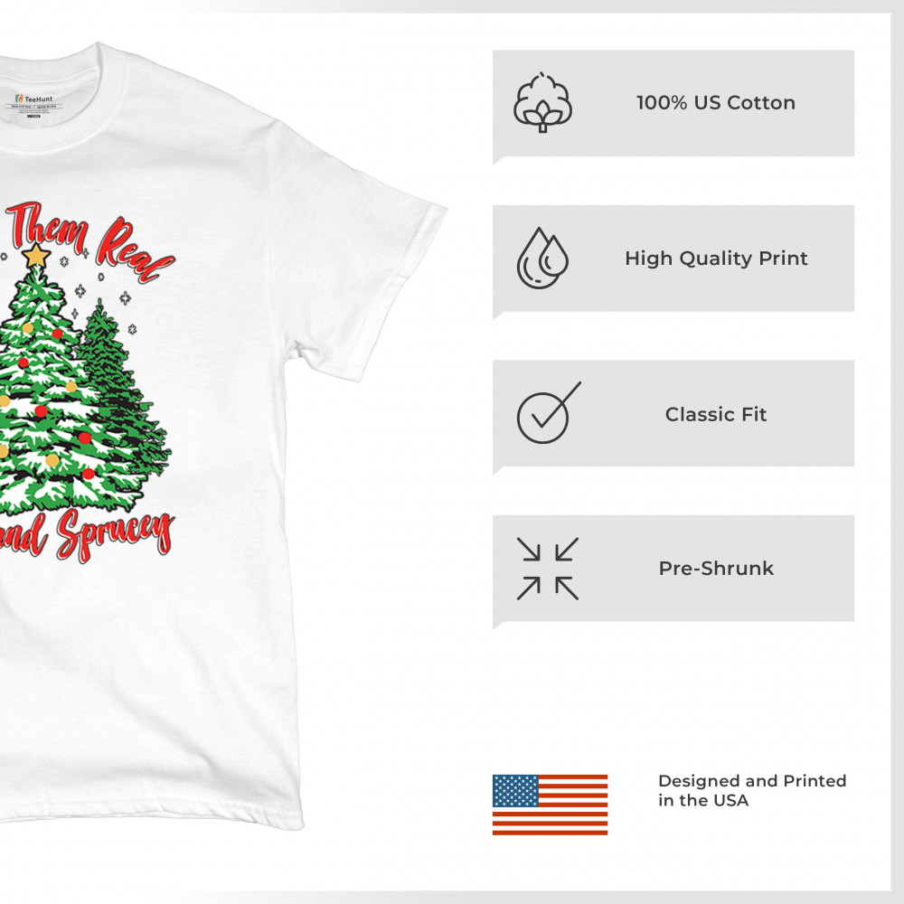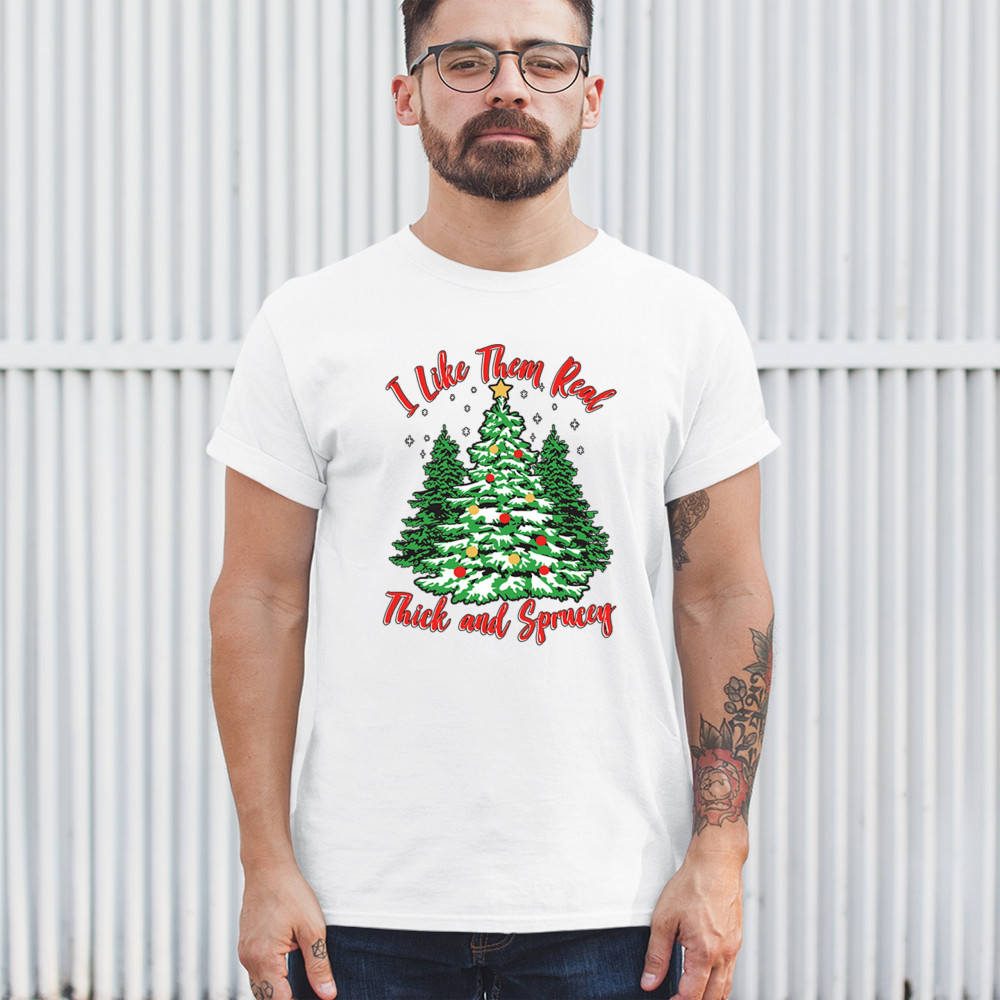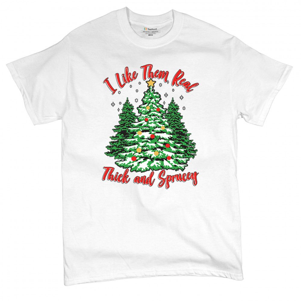 Enjoy the holiday season with our "I Like Them Real, Thick, and Sprucey" Christmas tree design, perfect for festive gatherings and holiday gifting!