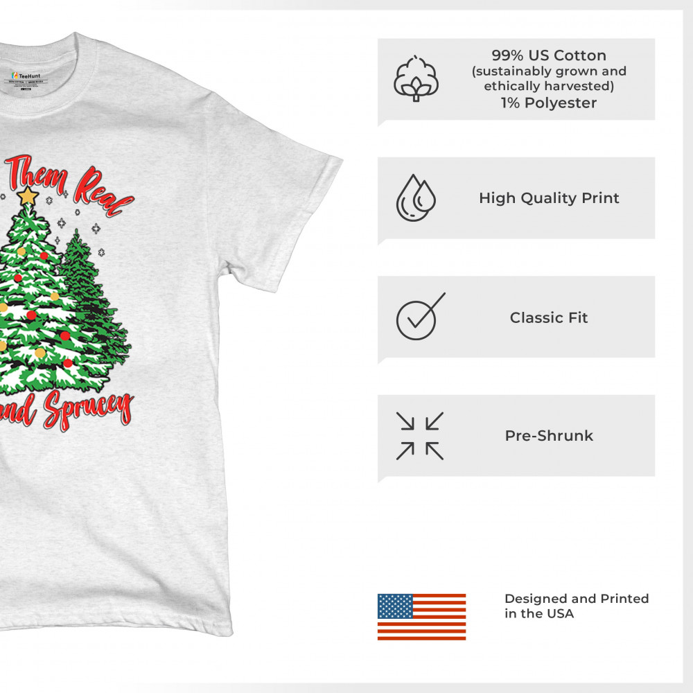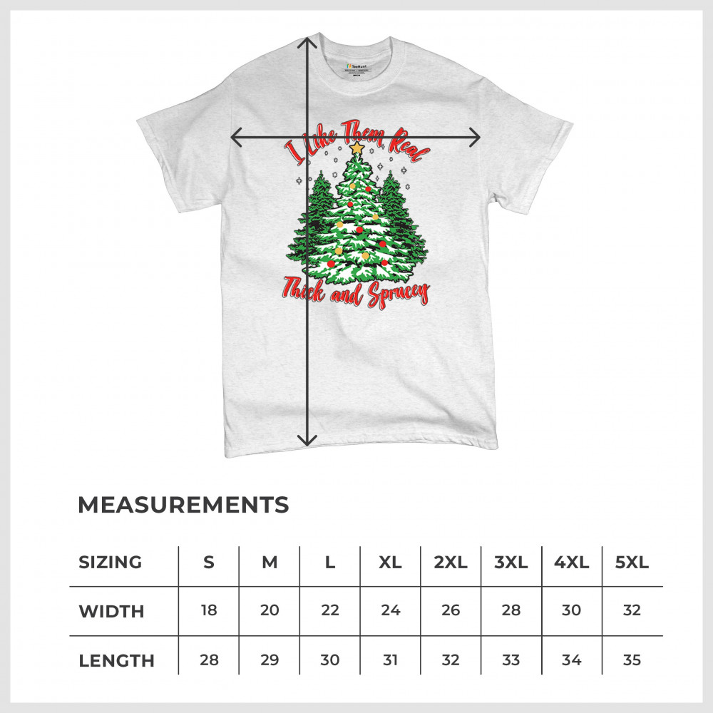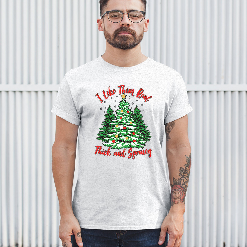 Enjoy the holiday season with our "I Like Them Real, Thick, and Sprucey" Christmas tree design, perfect for festive gatherings and holiday gifting!