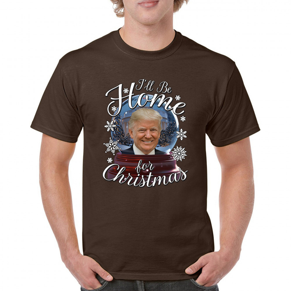 Get ready for the ultimate blend of holiday cheer and American pride with this "I'll Be Home for Christmas" design featuring Donald J. Trump in a festive snow globe. Perfect for gifts, holiday parties, or cozy mornings, this standout piece celebrates the season with style. Whether paired with matching pajamas or a cozy sweatshirt, it's a perfect way to add patriotic charm to your Feliz Navidad celebrations or office gatherings.