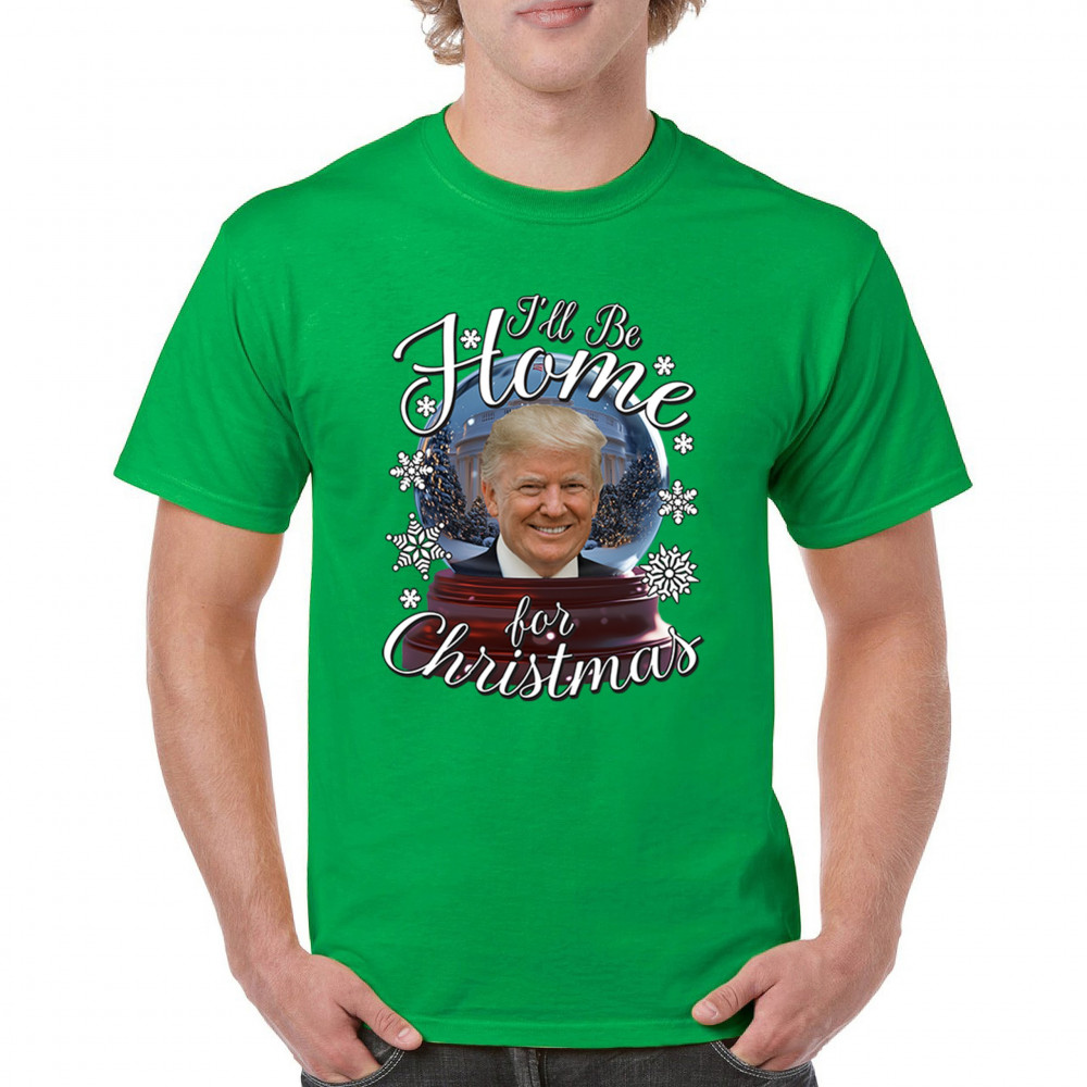 Get ready for the ultimate blend of holiday cheer and American pride with this "I'll Be Home for Christmas" design featuring Donald J. Trump in a festive snow globe. Perfect for gifts, holiday parties, or cozy mornings, this standout piece celebrates the season with style. Whether paired with matching pajamas or a cozy sweatshirt, it's a perfect way to add patriotic charm to your Feliz Navidad celebrations or office gatherings.