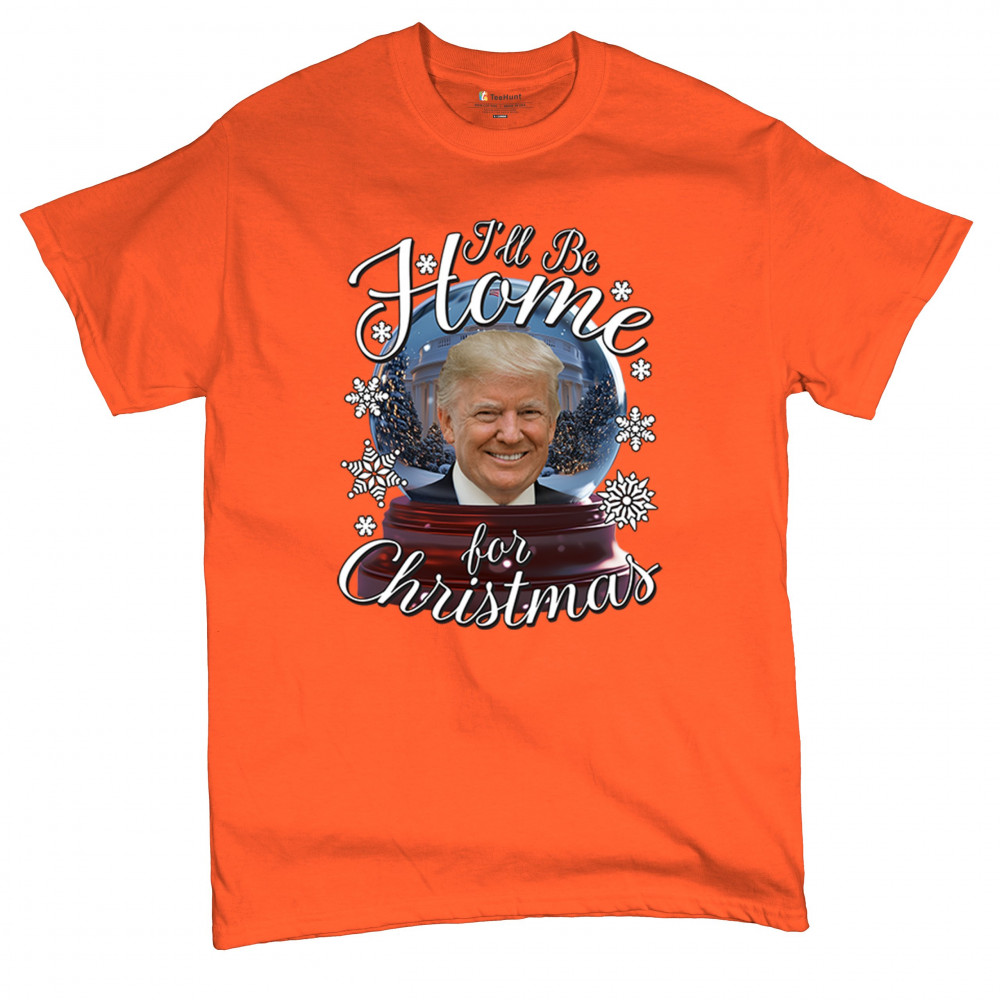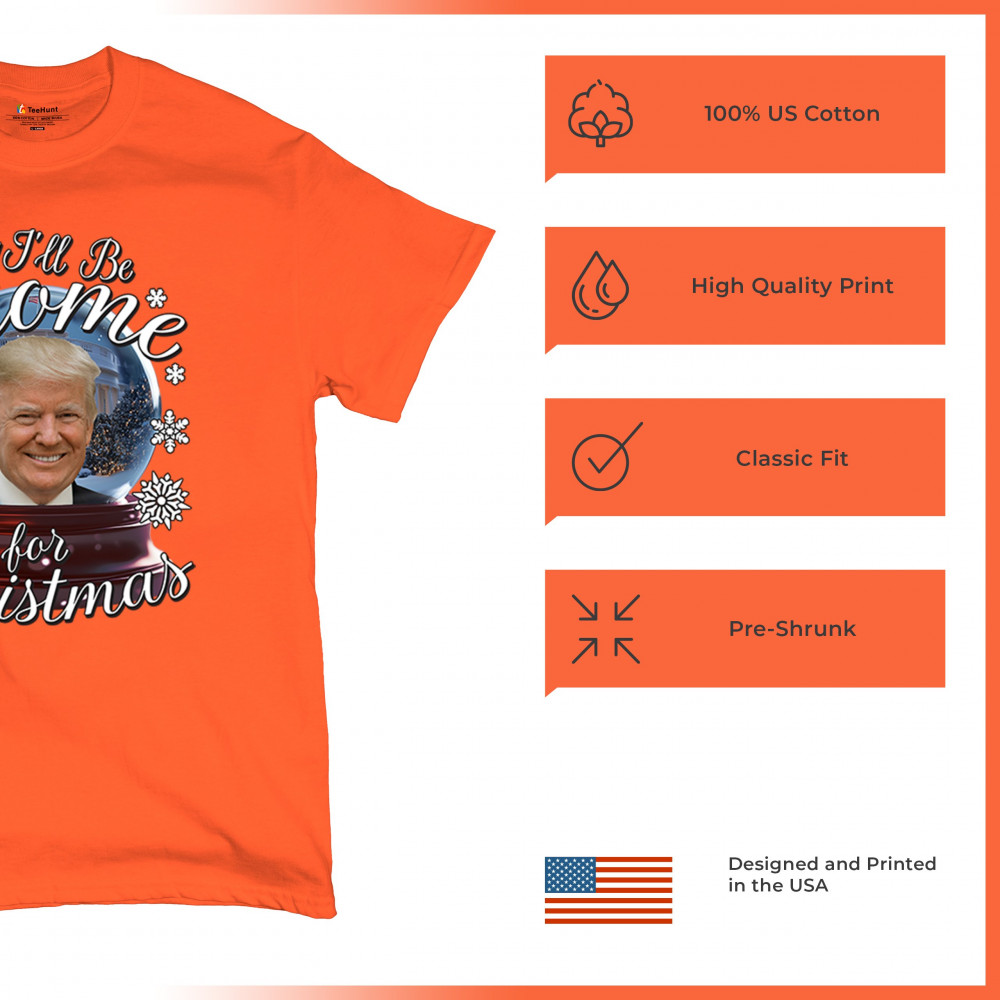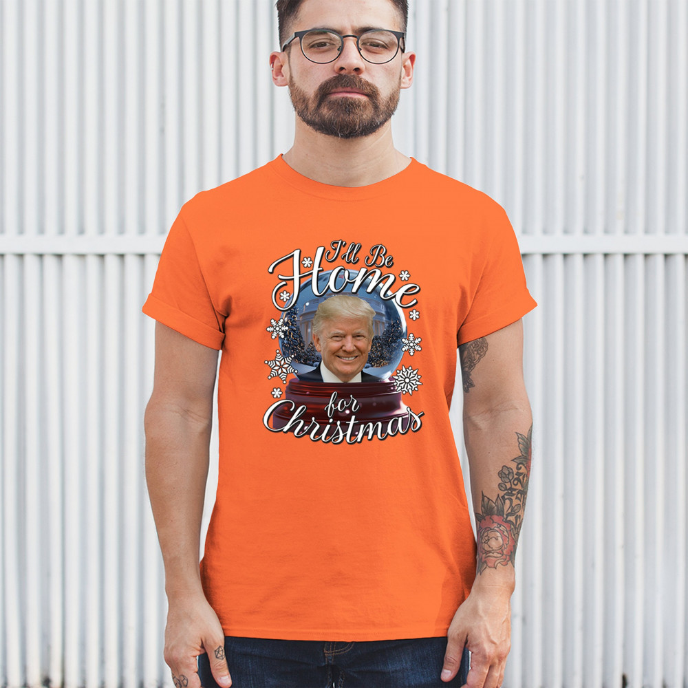 Get ready for the ultimate blend of holiday cheer and American pride with this "I'll Be Home for Christmas" design featuring Donald J. Trump in a festive snow globe. Perfect for gifts, holiday parties, or cozy mornings, this standout piece celebrates the season with style. Whether paired with matching pajamas or a cozy sweatshirt, it's a perfect way to add patriotic charm to your Feliz Navidad celebrations or office gatherings.
