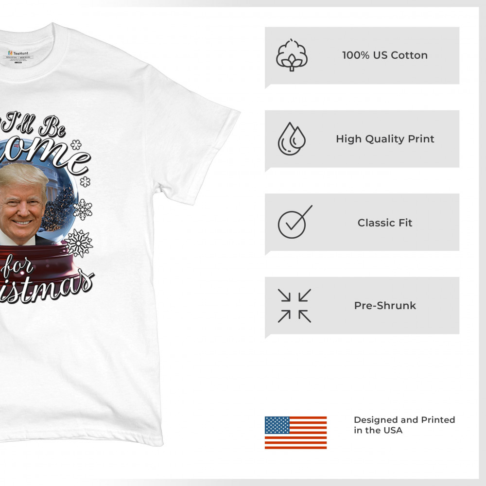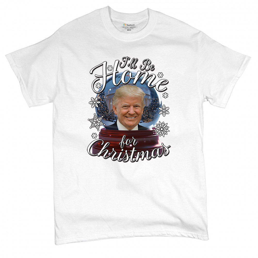 Get ready for the ultimate blend of holiday cheer and American pride with this "I'll Be Home for Christmas" design featuring Donald J. Trump in a festive snow globe. Perfect for gifts, holiday parties, or cozy mornings, this standout piece celebrates the season with style. Whether paired with matching pajamas or a cozy sweatshirt, it's a perfect way to add patriotic charm to your Feliz Navidad celebrations or office gatherings.