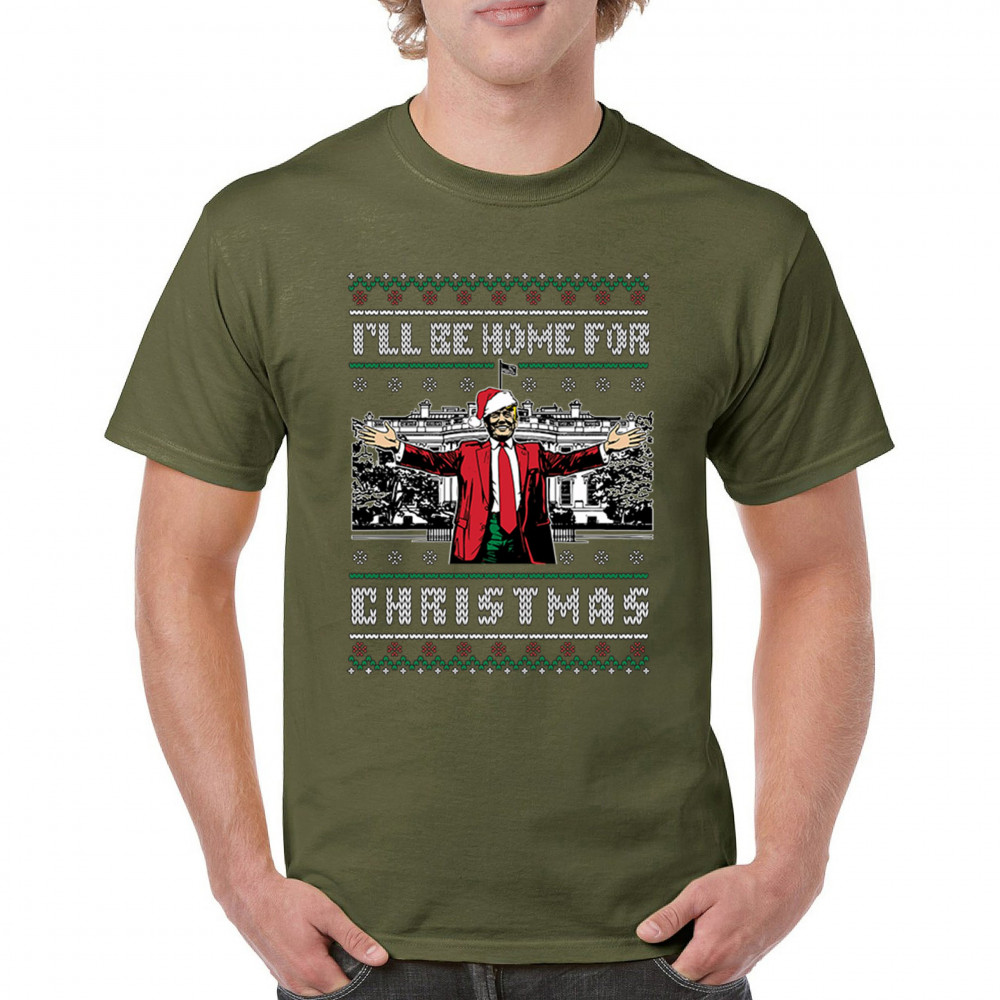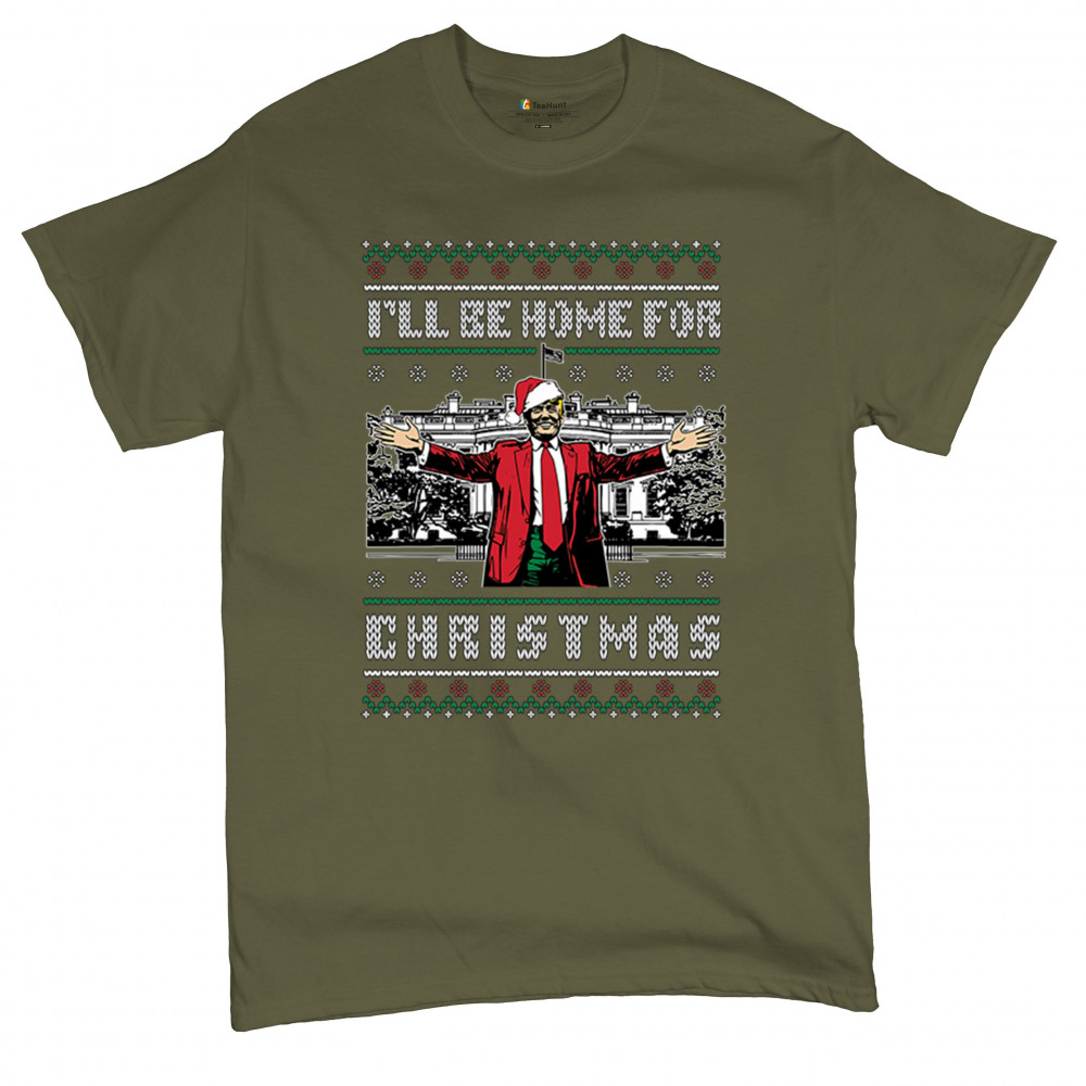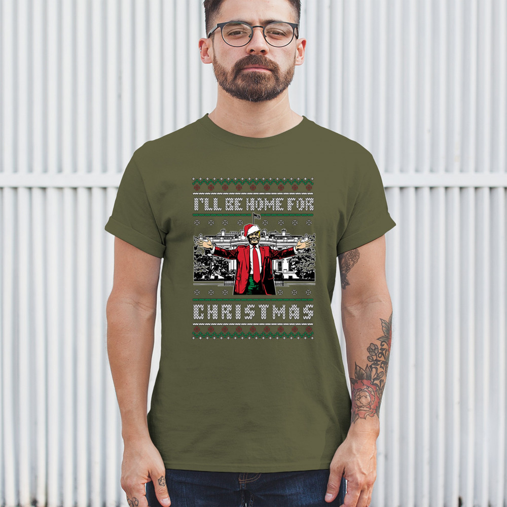 Add humor and patriotism to your holidays with this festive Trump "I'll Be Home for Christmas" design—perfect for parties and unique gifts!
