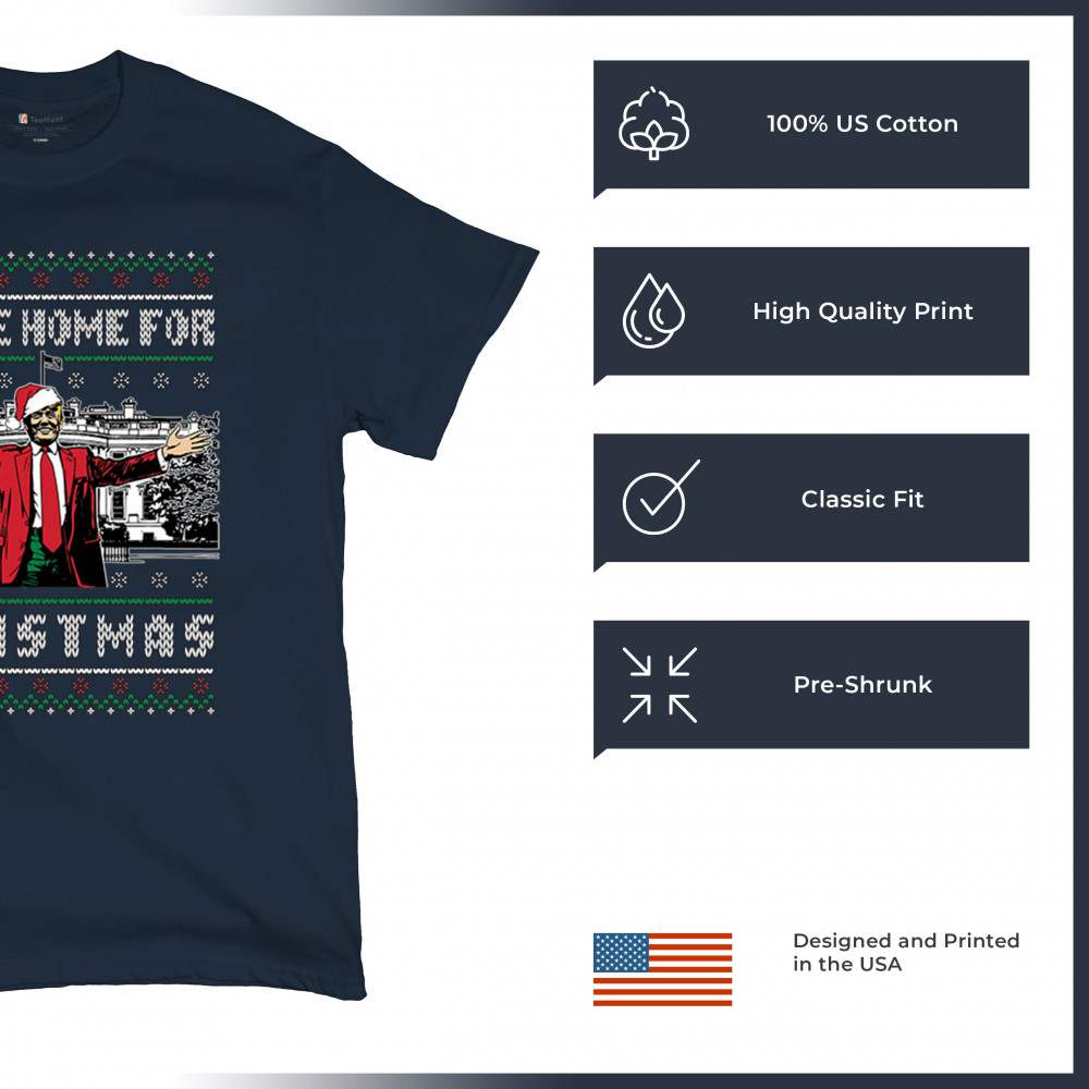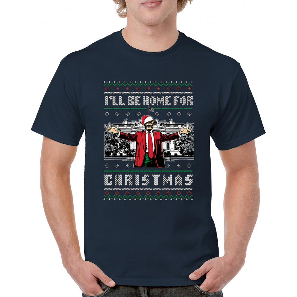 Get into the Christmas spirit with the "I'll Be Home for Christmas" design featuring Donald J. Trump in a festive holiday setting. Perfect for ugly sweater contests, holiday gatherings, and unique gifts for supporters, this humorous design adds a bold, patriotic touch to your seasonal celebrations. Whether for cozy mornings or office parties, it's a must-have for holiday cheer.