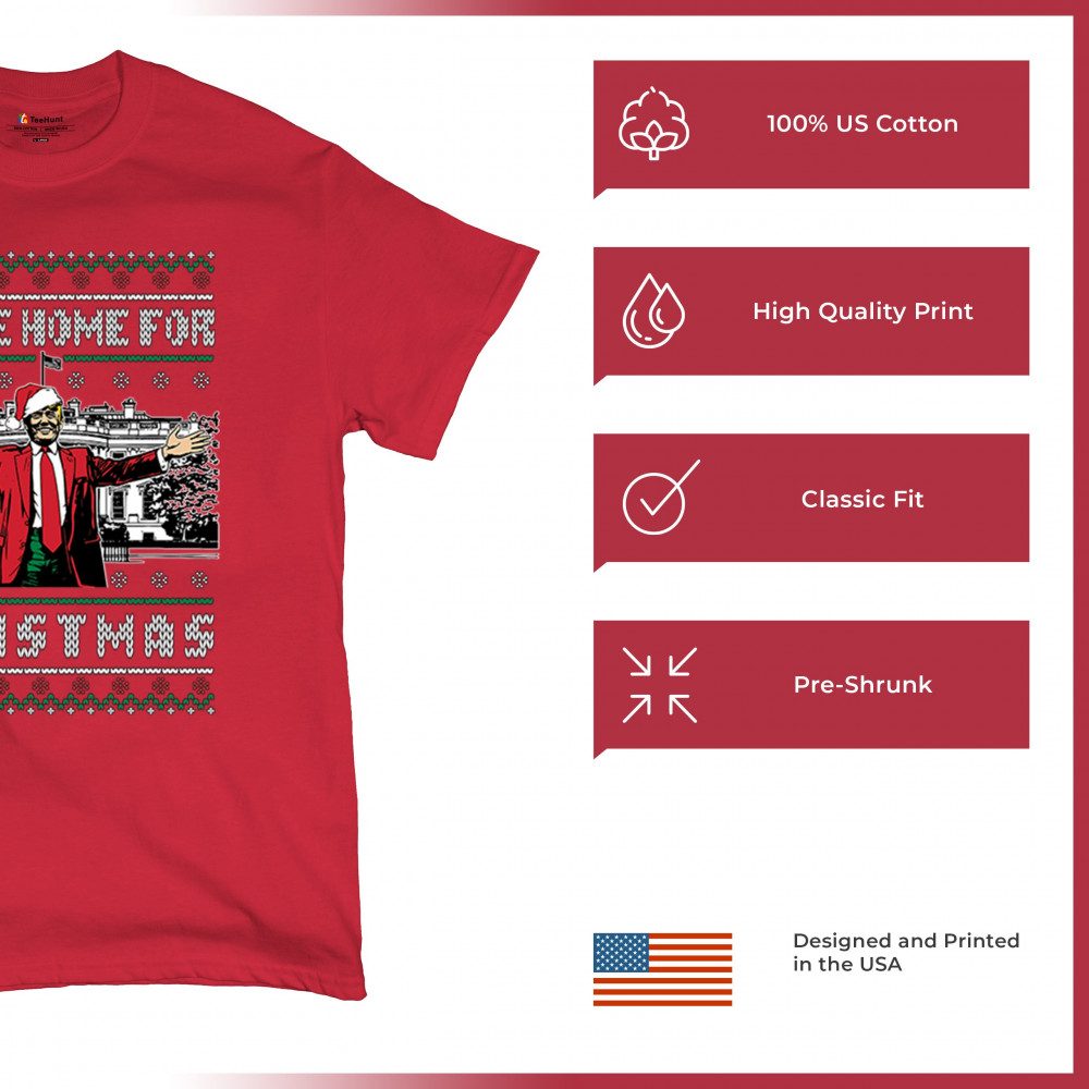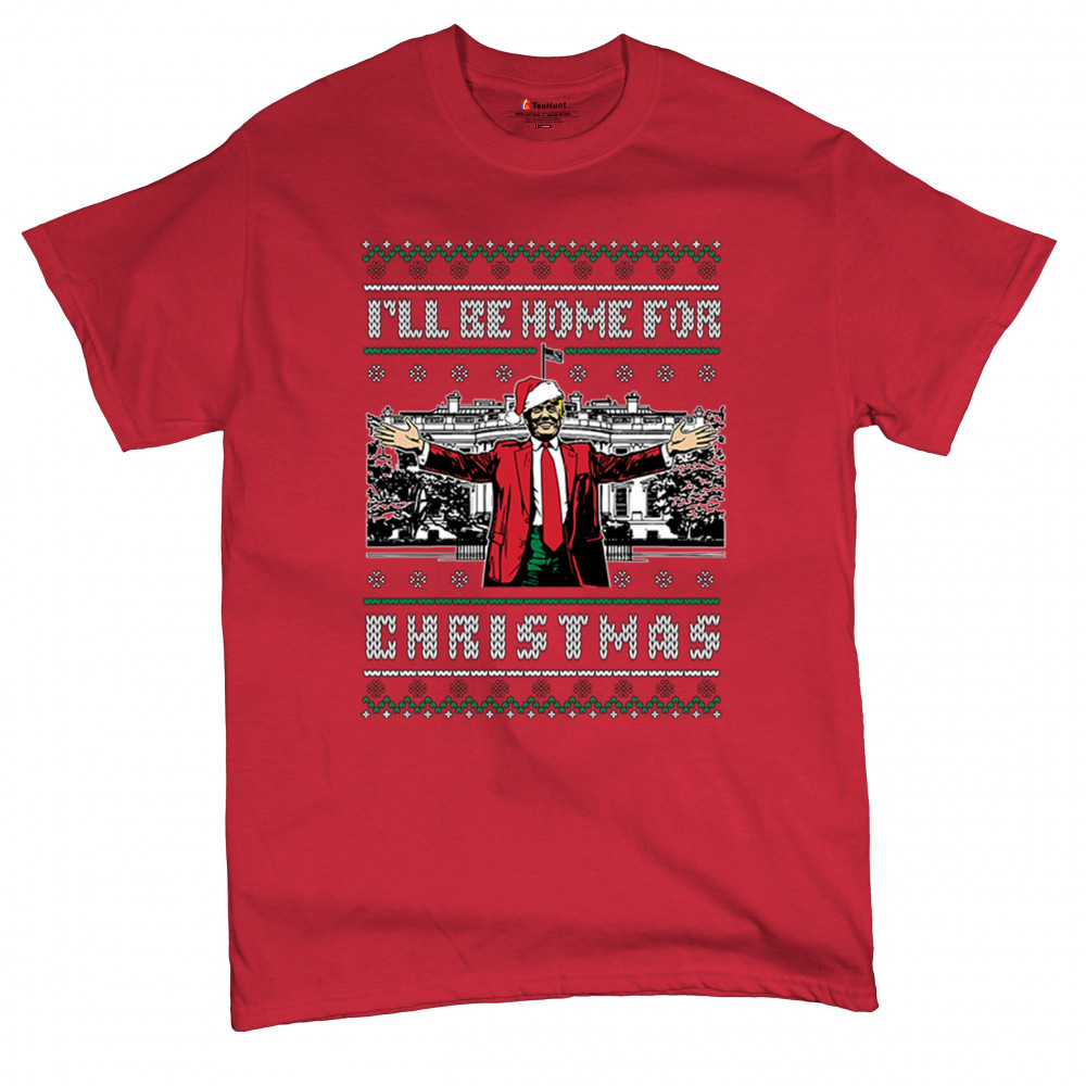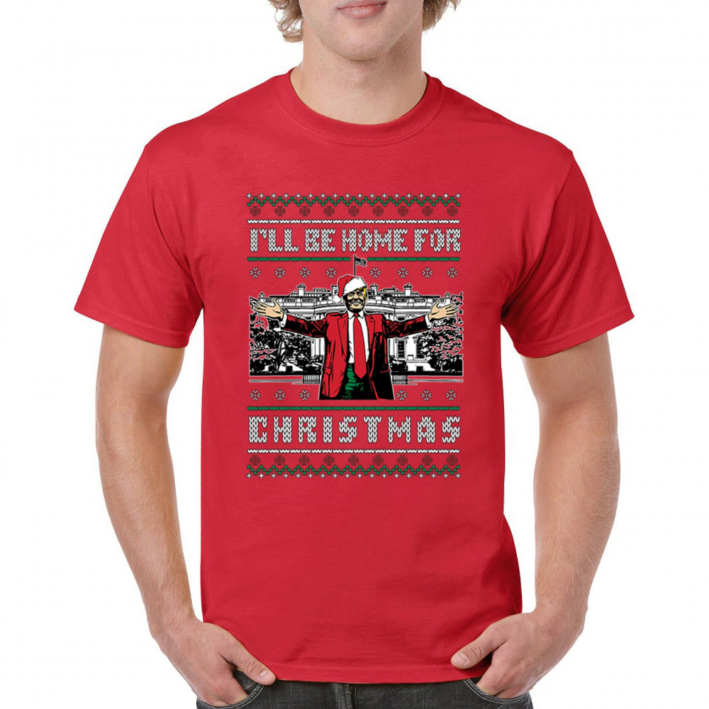 Get into the Christmas spirit with the "I'll Be Home for Christmas" design featuring Donald J. Trump in a festive holiday setting. Perfect for ugly sweater contests, holiday gatherings, and unique gifts for supporters, this humorous design adds a bold, patriotic touch to your seasonal celebrations. Whether for cozy mornings or office parties, it's a must-have for holiday cheer.
