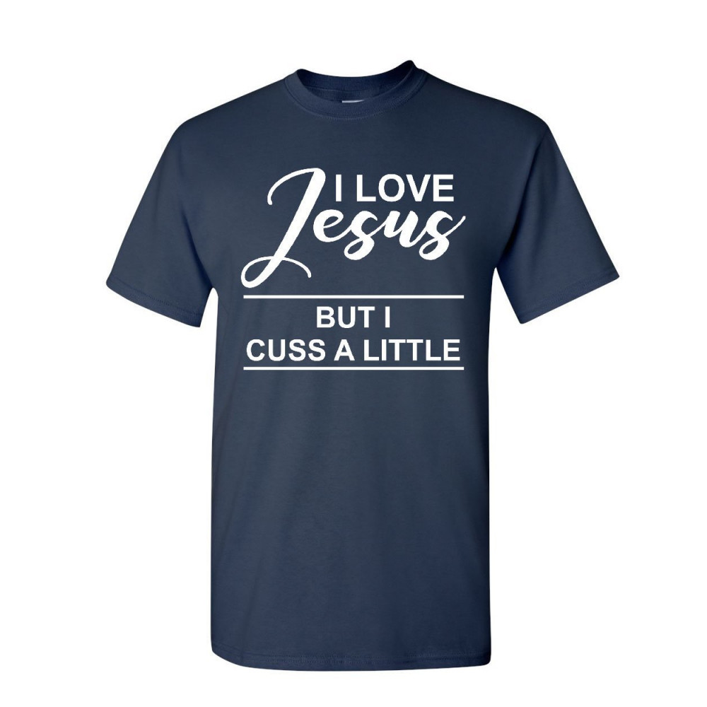 I LOVE JESUS BUT I CUSS A LITTLE t-shirt funny religion catholic mens tee shirt navy blue