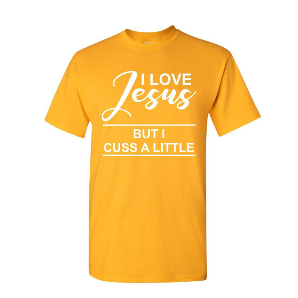 I LOVE JESUS BUT I CUSS A LITTLE t-shirt funny religion catholic mens tee shirt yellow