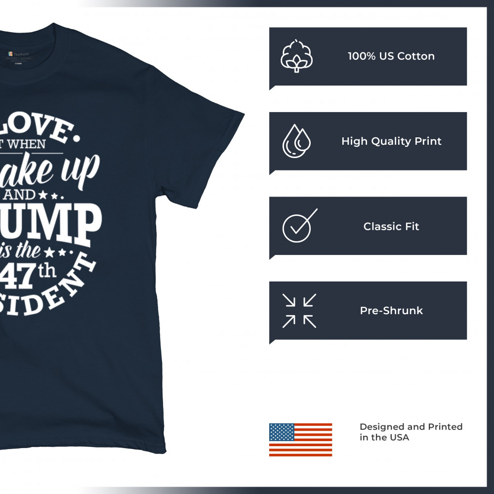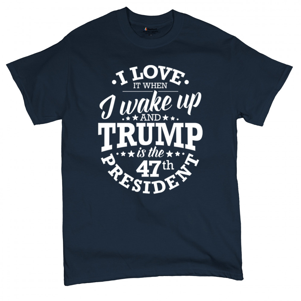 This "I Love It When I Wake Up and Trump is the 47th President" design is the ultimate expression of support for Donald J. Trump and his vision for America. Join the ranks of proud conservatives, Republicans, and America First advocates who are excited about the 47th President’s leadership. Celebrate the Red Wave and stay true to the values of freedom and strength that Trump embodies. Perfect for rallies, gatherings, and everyday patriotic wear.