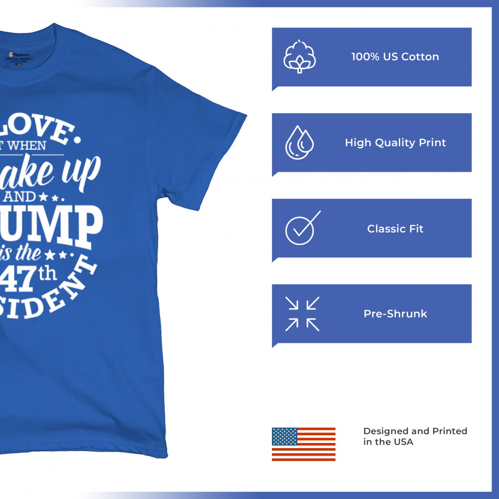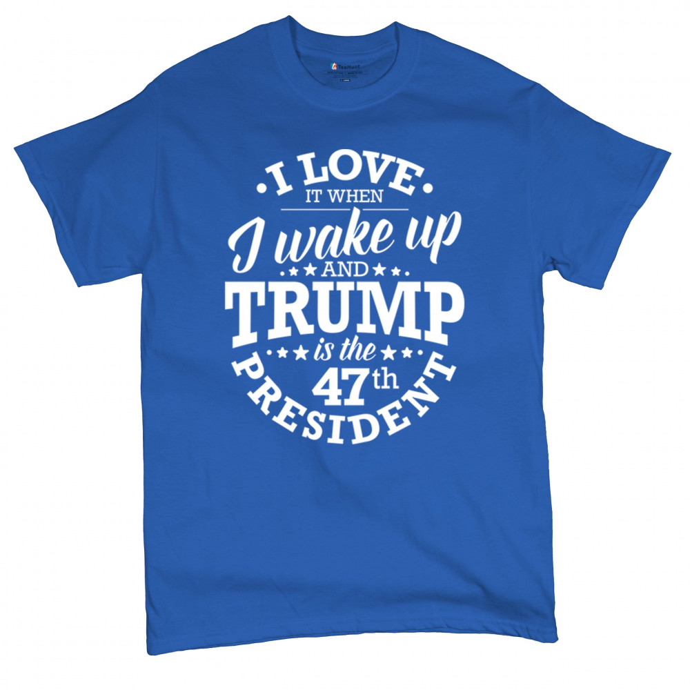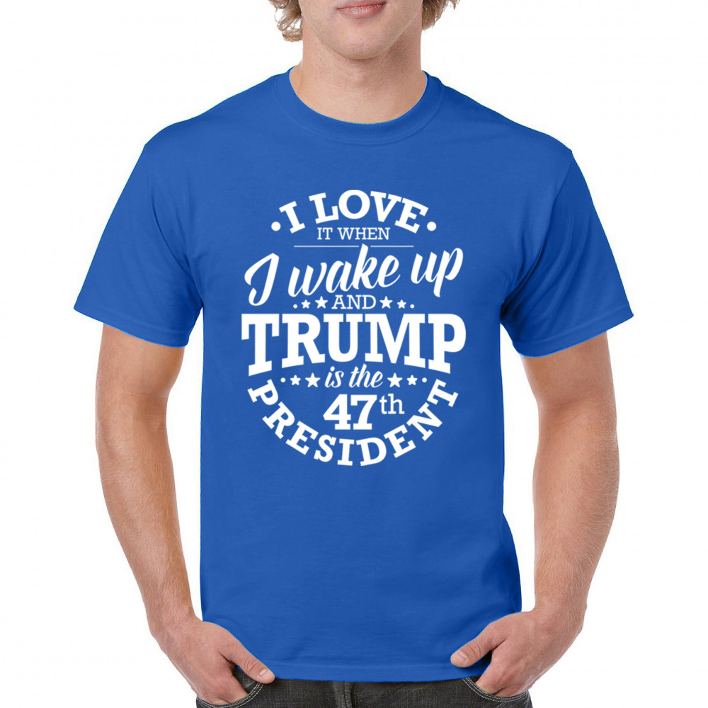 This "I Love It When I Wake Up and Trump is the 47th President" design is the ultimate expression of support for Donald J. Trump and his vision for America. Join the ranks of proud conservatives, Republicans, and America First advocates who are excited about the 47th President’s leadership. Celebrate the Red Wave and stay true to the values of freedom and strength that Trump embodies. Perfect for rallies, gatherings, and everyday patriotic wear.