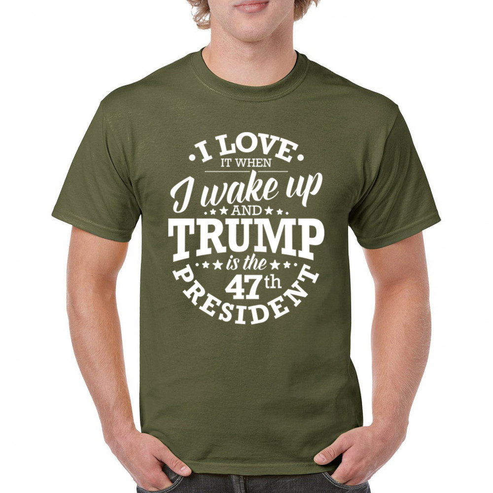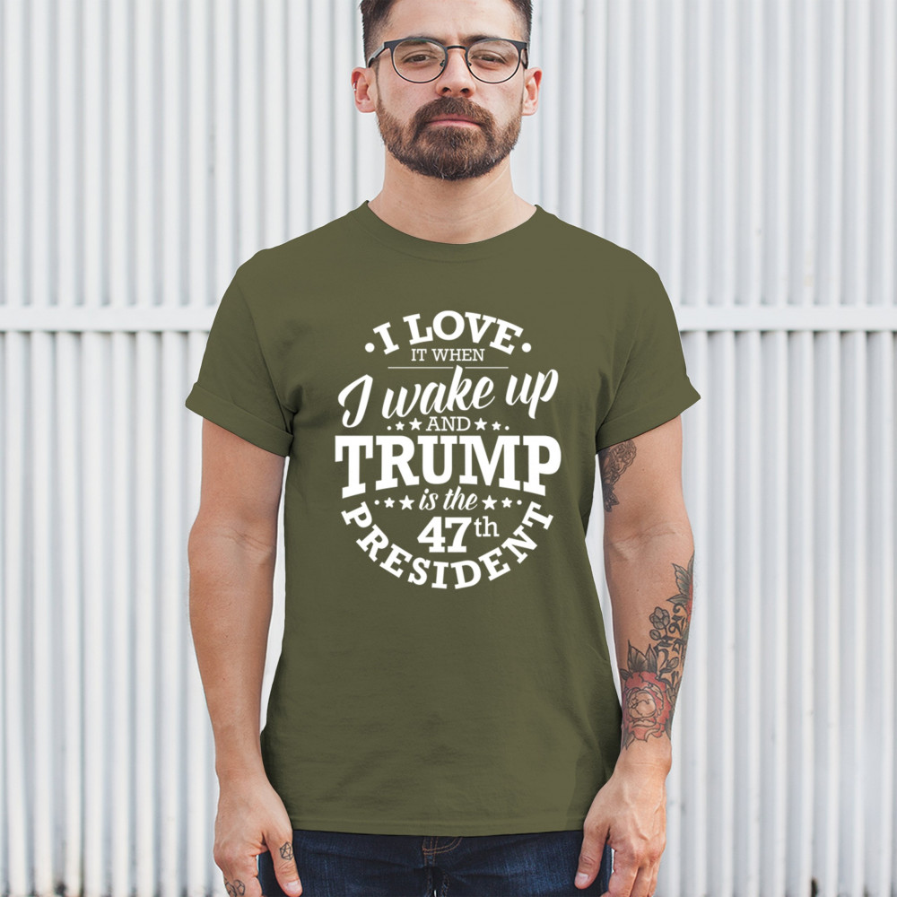 This "I Love It When I Wake Up and Trump is the 47th President" design is the ultimate expression of support for Donald J. Trump and his vision for America. Join the ranks of proud conservatives, Republicans, and America First advocates who are excited about the 47th President’s leadership. Celebrate the Red Wave and stay true to the values of freedom and strength that Trump embodies. Perfect for rallies, gatherings, and everyday patriotic wear.