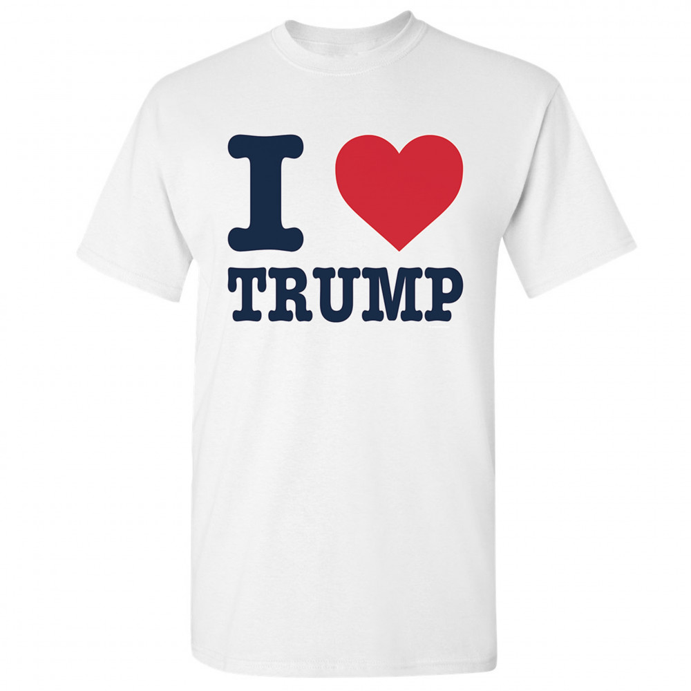 A political print saying "I ? Trump". A great choice to wear for a Trump rally or give as a gift to a Donald Trump and Mike Pence supporter before 2020 presidential elections.