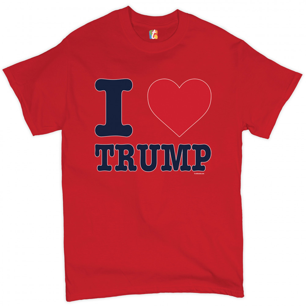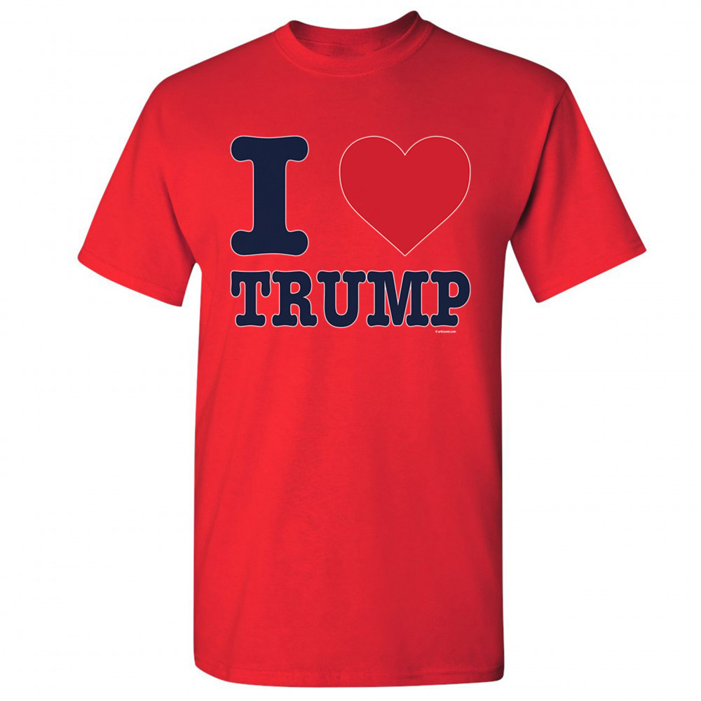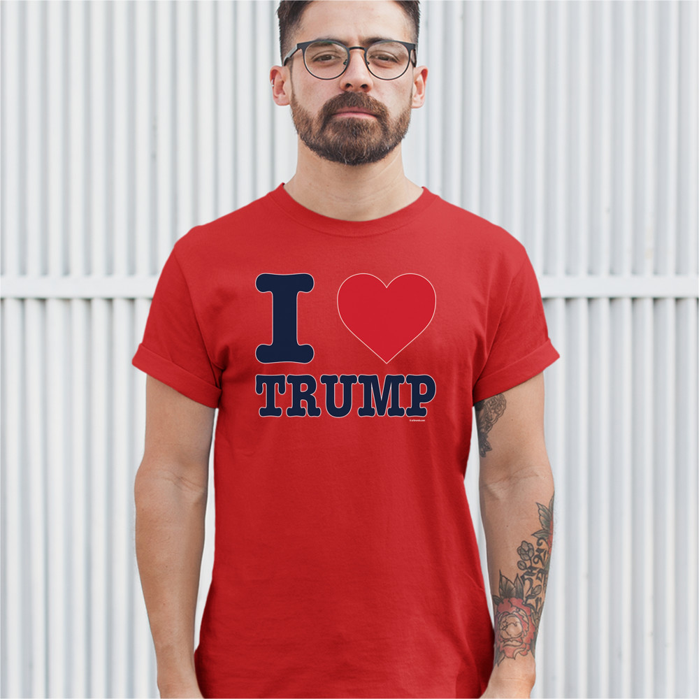A political print saying "I ? Trump". A great choice to wear for a Trump rally or give as a gift to a Donald Trump and Mike Pence supporter before 2020 presidential elections.