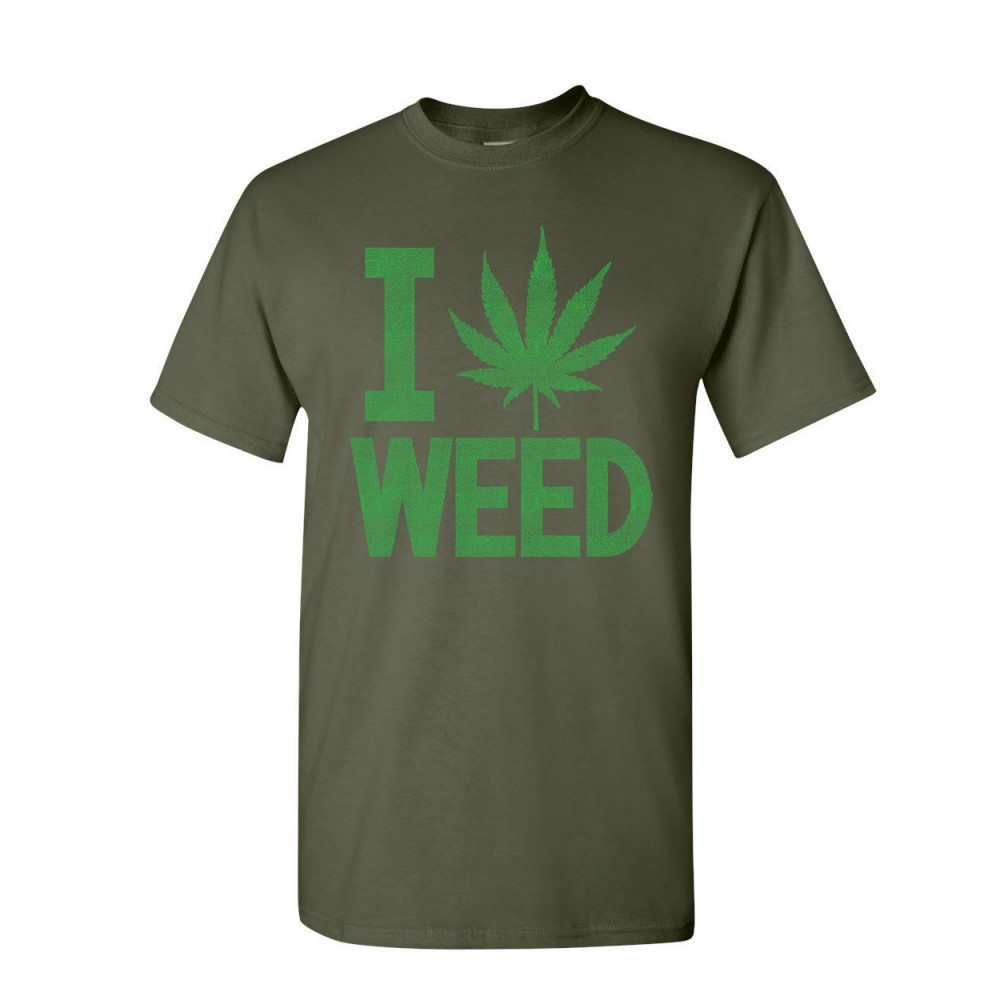 I LOVE WEED t-shirt smoking 420 pot reggae rasta marijuana kush mens tee shirt military green