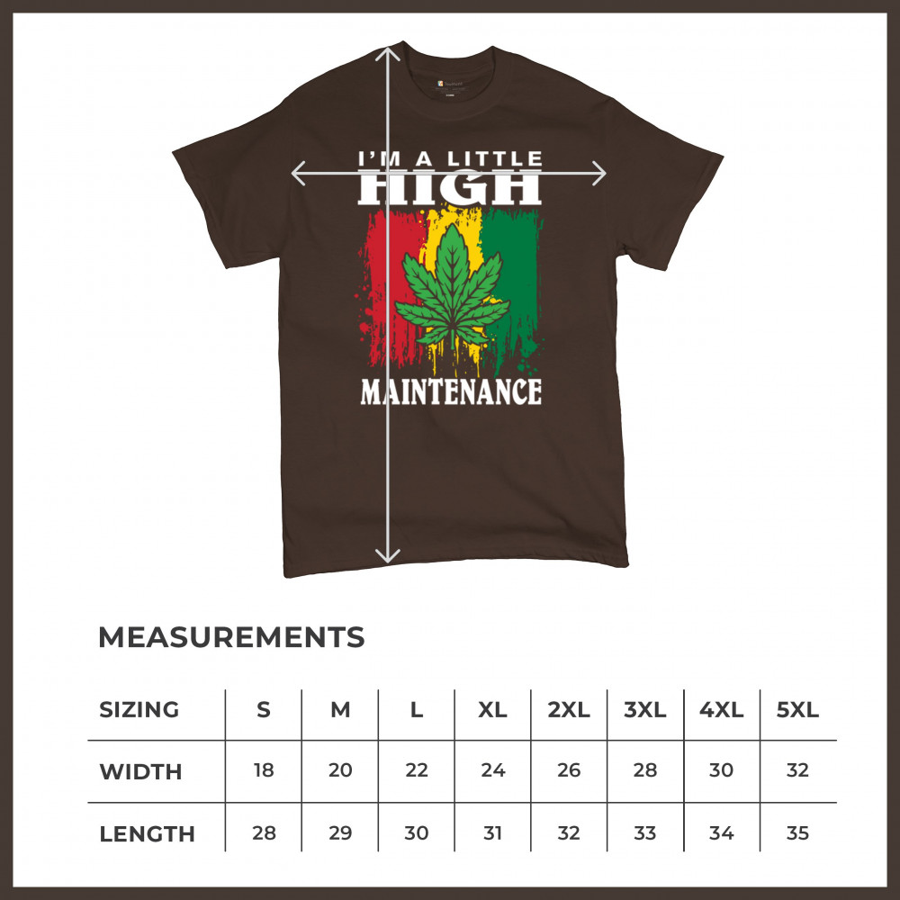 Express your unique style and sense of humor with our "I'm a Little High Maintenance" design. Featuring a bold cannabis leaf against a colorful, vibrant background, this design is perfect for those who love Mary Jane and appreciate a touch of trippy humor. Ideal for casual wear, relaxing with buds, or making a statement about cannabis culture. Whether you're chilling, blazing, or just want to add some fun to your wardrobe, this design is a must-have.