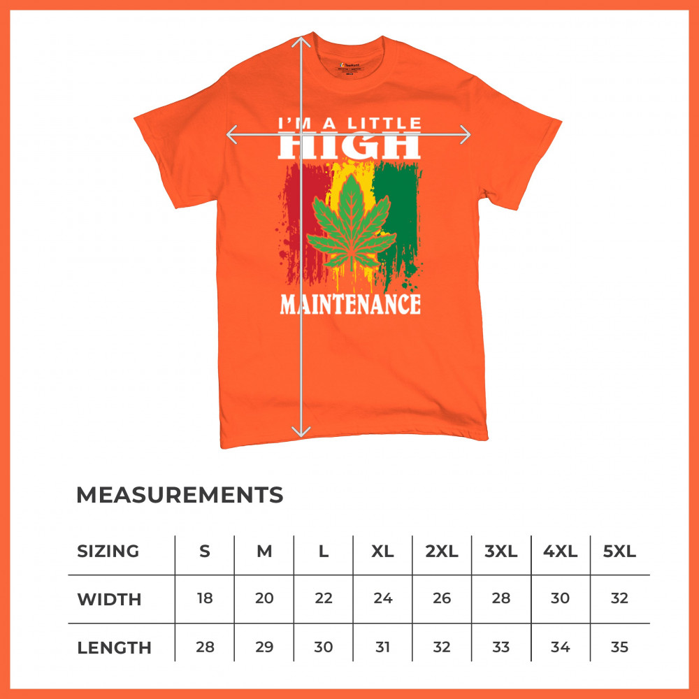 Express your unique style and sense of humor with our "I'm a Little High Maintenance" design. Featuring a bold cannabis leaf against a colorful, vibrant background, this design is perfect for those who love Mary Jane and appreciate a touch of trippy humor. Ideal for casual wear, relaxing with buds, or making a statement about cannabis culture. Whether you're chilling, blazing, or just want to add some fun to your wardrobe, this design is a must-have.
