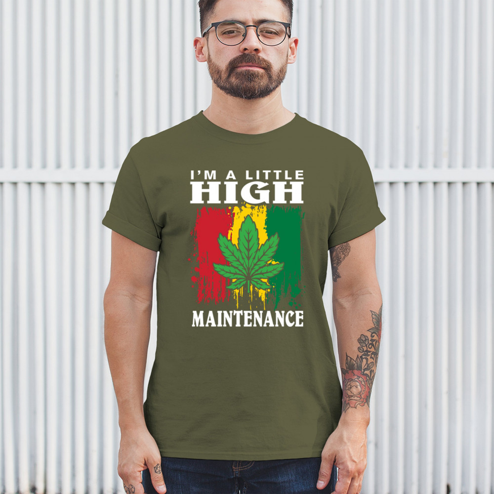 Express your unique style and sense of humor with our "I'm a Little High Maintenance" design. Featuring a bold cannabis leaf against a colorful, vibrant background, this design is perfect for those who love Mary Jane and appreciate a touch of trippy humor. Ideal for casual wear, relaxing with buds, or making a statement about cannabis culture. Whether you're chilling, blazing, or just want to add some fun to your wardrobe, this design is a must-have.