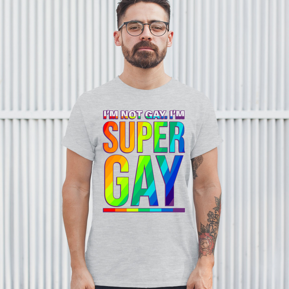 I'M NOT GAY. I'M SUPER GAY t-shirt funny lgbtq pride positivity men's tee ash gray