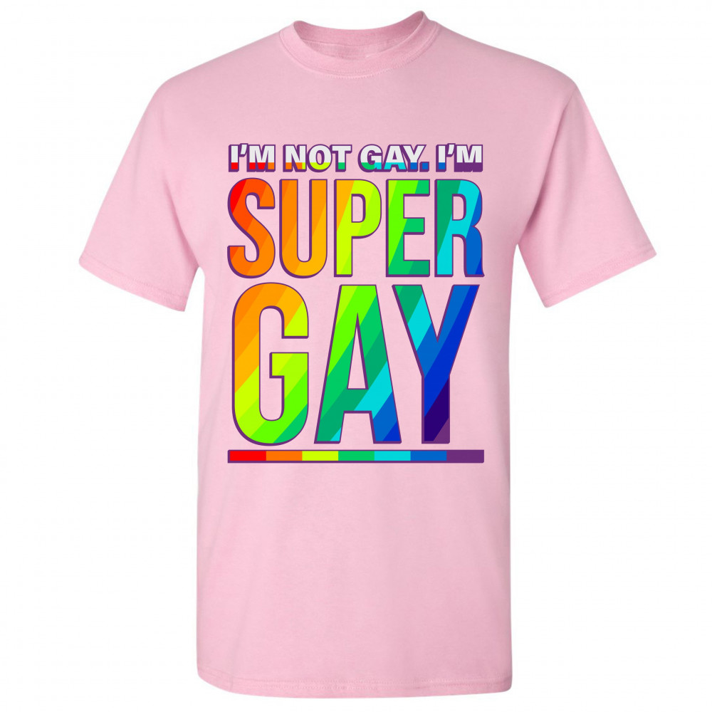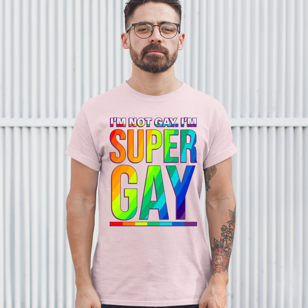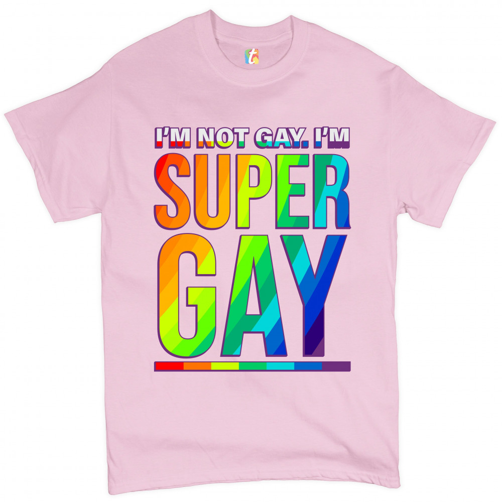 I'M NOT GAY. I'M SUPER GAY t-shirt funny lgbtq pride positivity men's tee light pink