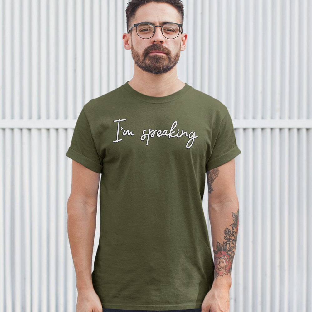 I'M SPEAKING t-shirt biden harris 2020 vice presidential debate men's tee military green