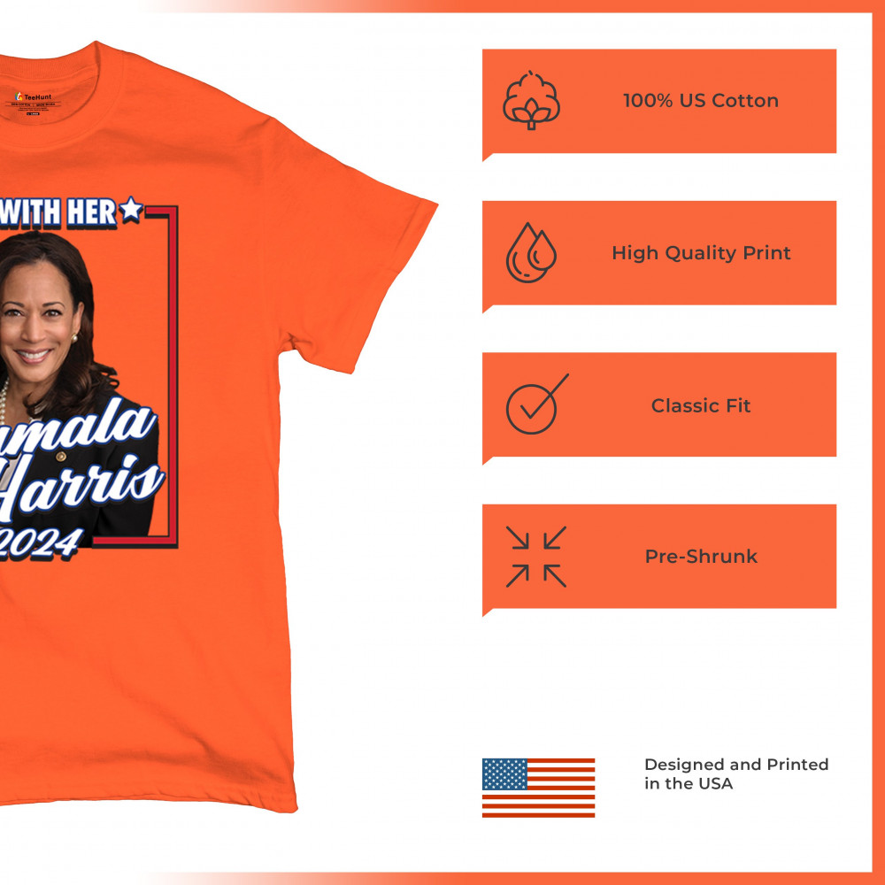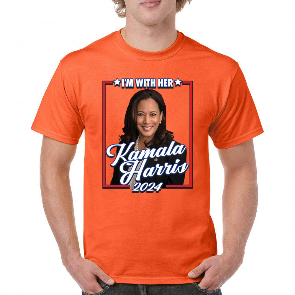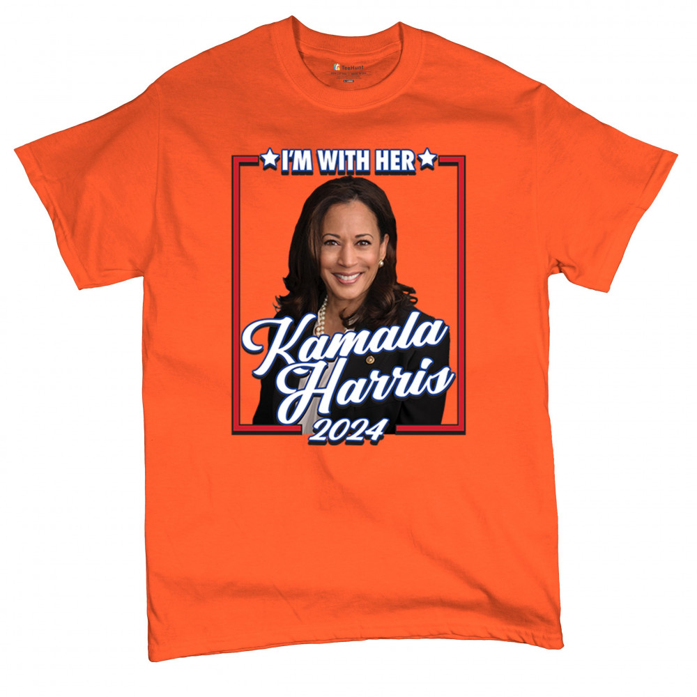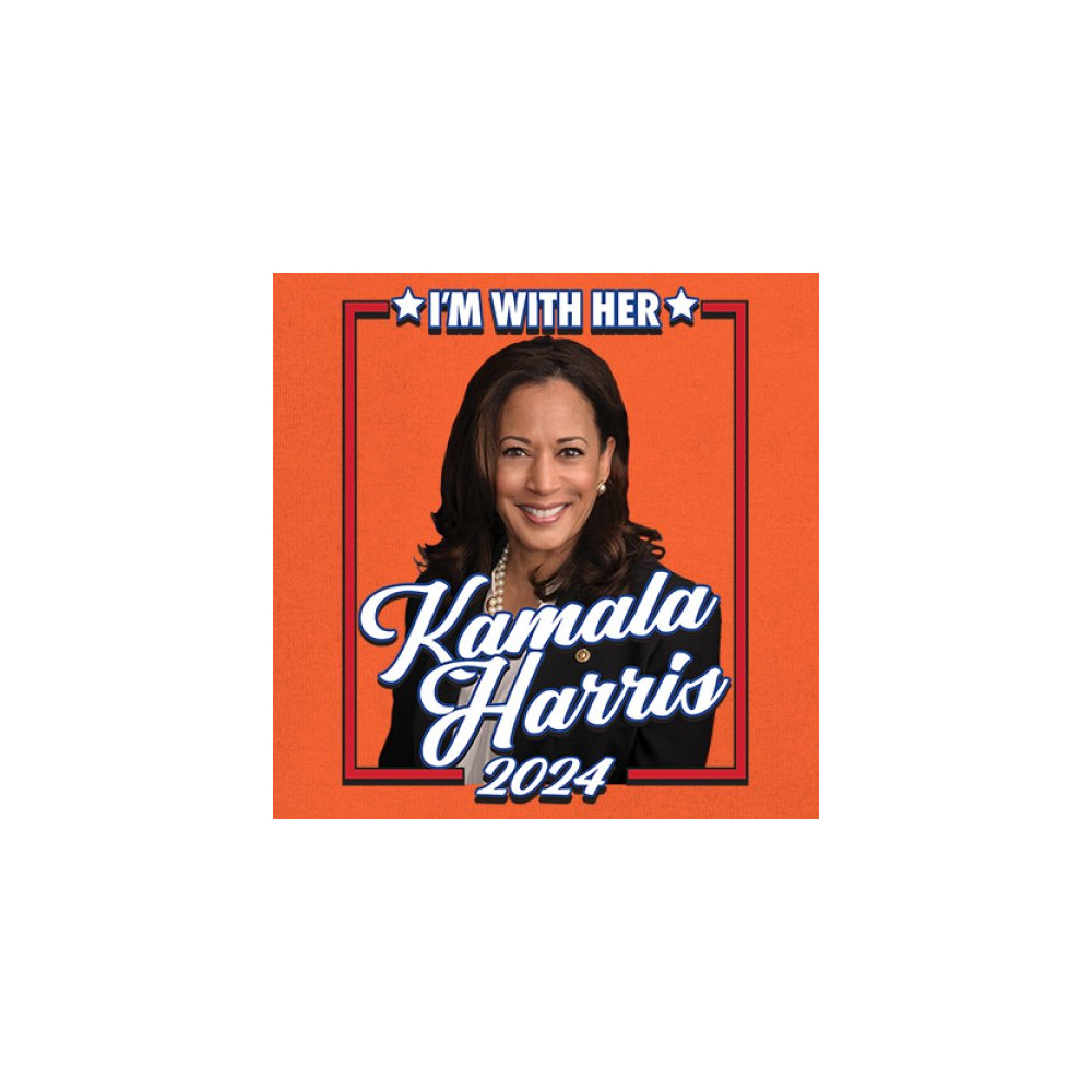 Stand with Kamala Harris in her 2024 presidential campaign with this vibrant design. Highlighting her commitment to progressive causes, this design is perfect for supporters of LGBTQ+ rights, women's rights, and social justice. Featuring the iconic "I'm With Her" slogan, it's a bold statement for anyone who believes in a brighter future. Wear it to rallies, events, or any day to show your support for Kamala Harris and her vision for America. A great addition to any supporter’s collection!