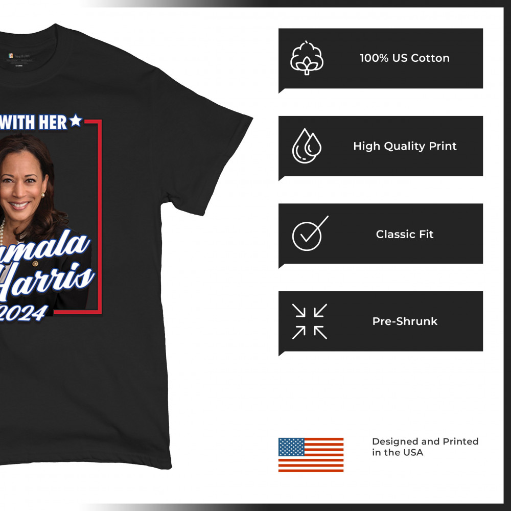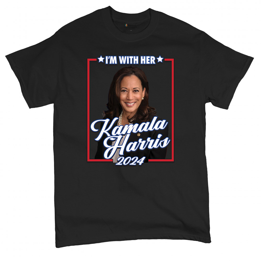 Stand with Kamala Harris in her 2024 presidential campaign with this vibrant design. Highlighting her commitment to progressive causes, this design is perfect for supporters of LGBTQ+ rights, women's rights, and social justice. Featuring the iconic "I'm With Her" slogan, it's a bold statement for anyone who believes in a brighter future. Wear it to rallies, events, or any day to show your support for Kamala Harris and her vision for America. A great addition to any supporter’s collection!