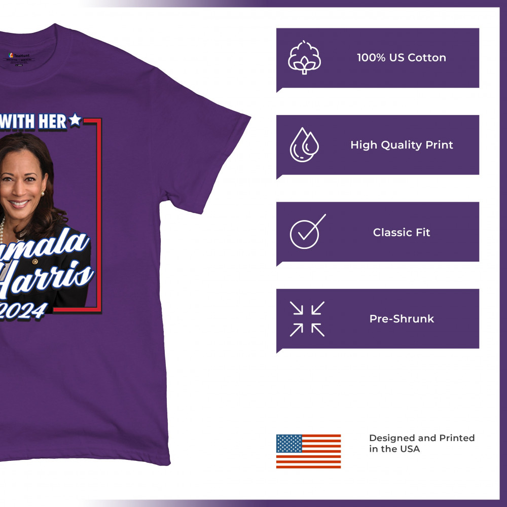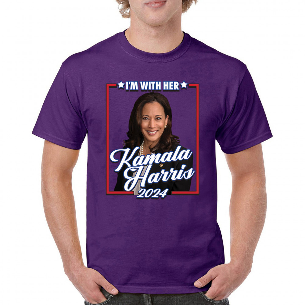 Stand with Kamala Harris in her 2024 presidential campaign with this vibrant design. Highlighting her commitment to progressive causes, this design is perfect for supporters of LGBTQ+ rights, women's rights, and social justice. Featuring the iconic "I'm With Her" slogan, it's a bold statement for anyone who believes in a brighter future. Wear it to rallies, events, or any day to show your support for Kamala Harris and her vision for America. A great addition to any supporter’s collection!
