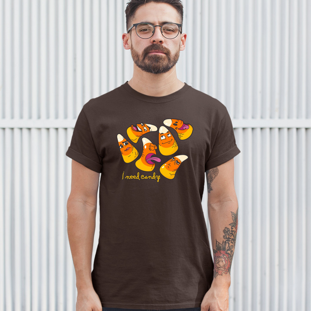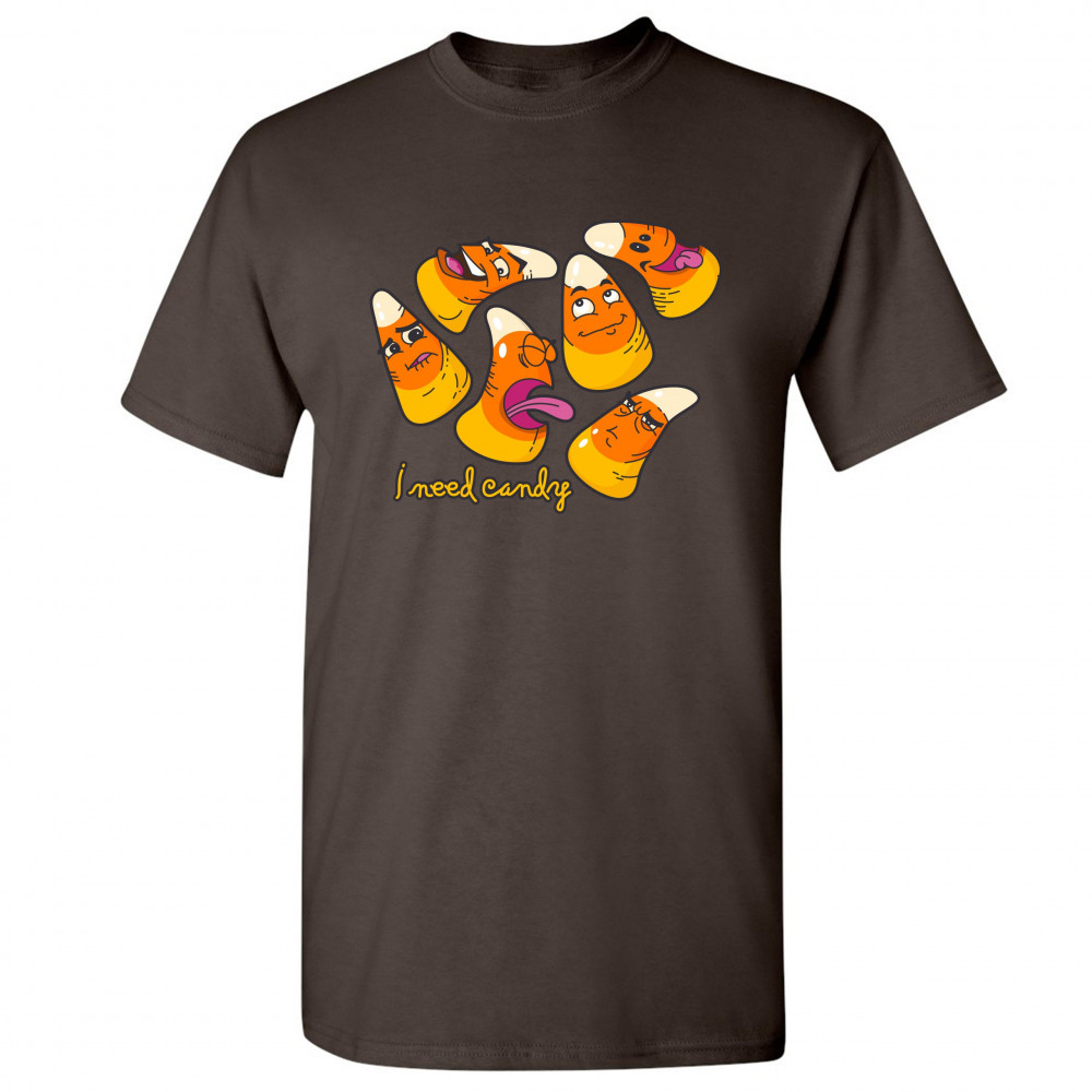 I NEED CANDY t-shirt happy halloween trick-or-treating funny men's tee brown