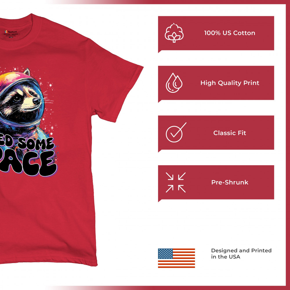 Show off your cosmic style with this “I Need Some Space†raccoon astronaut design. Perfect for galaxy geeks, wildlife lovers, and introverts with a sense of humor, this shirt combines Rocket Ship fun, quirky raccoon design, and trash panda humor. An ideal pick for fans of animal astronaut prints, cosmic sci-fi themes, and space-inspired fashion with a playful twist.