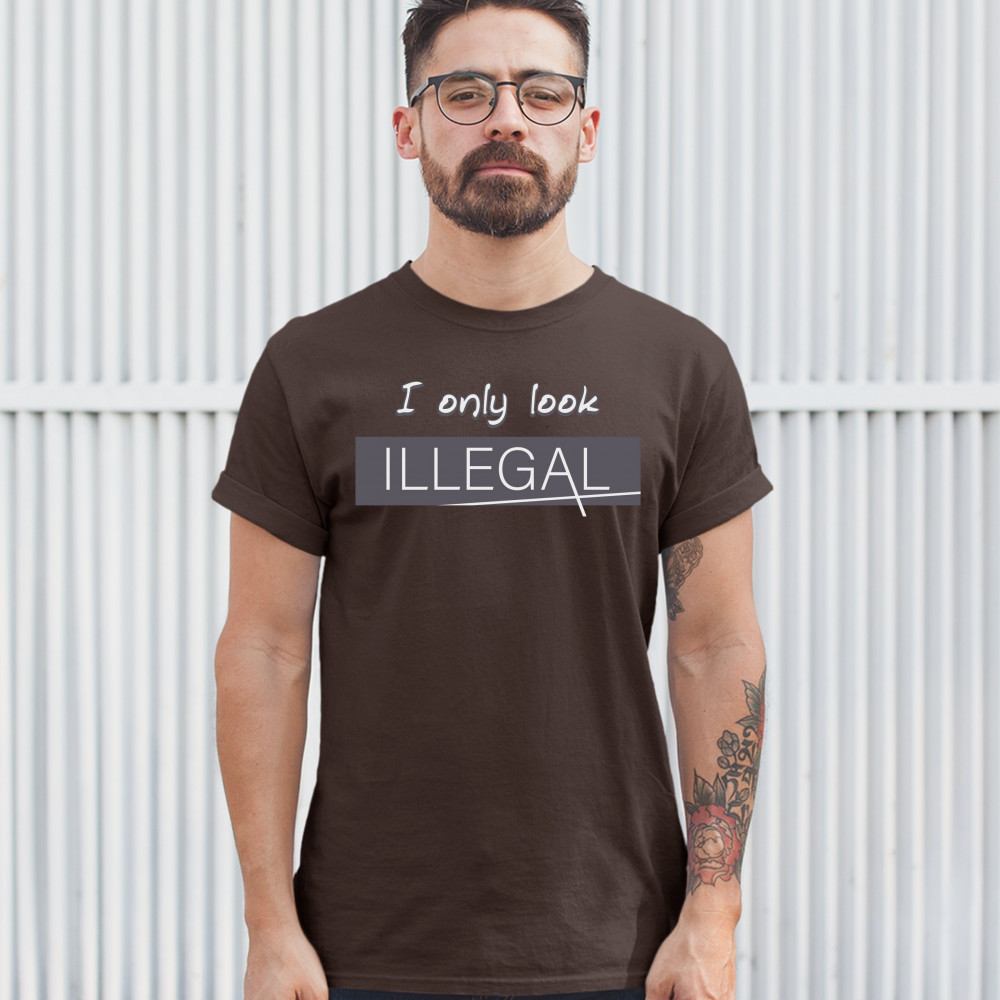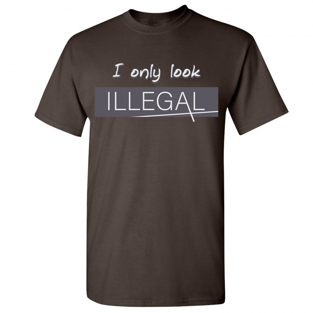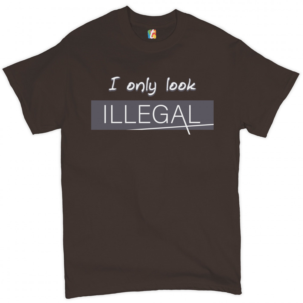 I ONLY LOOK ILLEGAL t-shirt stop racism pro immigration funny men's tee brown