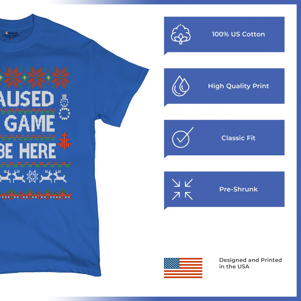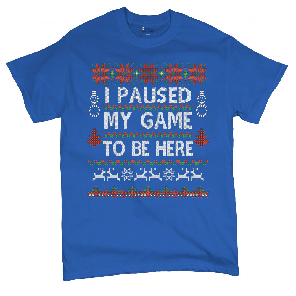 I PAUSED MY GAME TO BE HERE UGLY SWEATER THEME t-shirt christmas men's tee royal blue