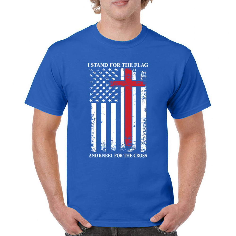 Celebrate faith and country with our Stand for the Flag Kneel for the Cross design. Featuring iconic symbols like the American flag and the Punisher emblem, this shirt is a testament to Christian principles and patriotism. A must-have for those seeking Trump merchandise and expressing unwavering support for the military.