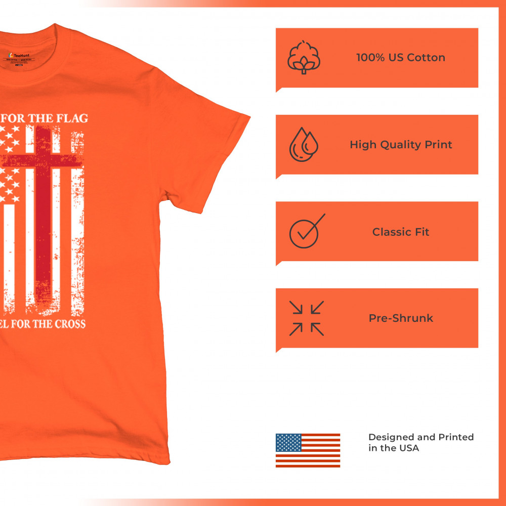 Wrap yourself in the spirit of patriotism and faith with our Stand for the Flag Kneel for the Cross design. This isn't just any Trump shirt—it's a symbol of unwavering support for American values. Featuring the iconic American flag intertwined with the Pu