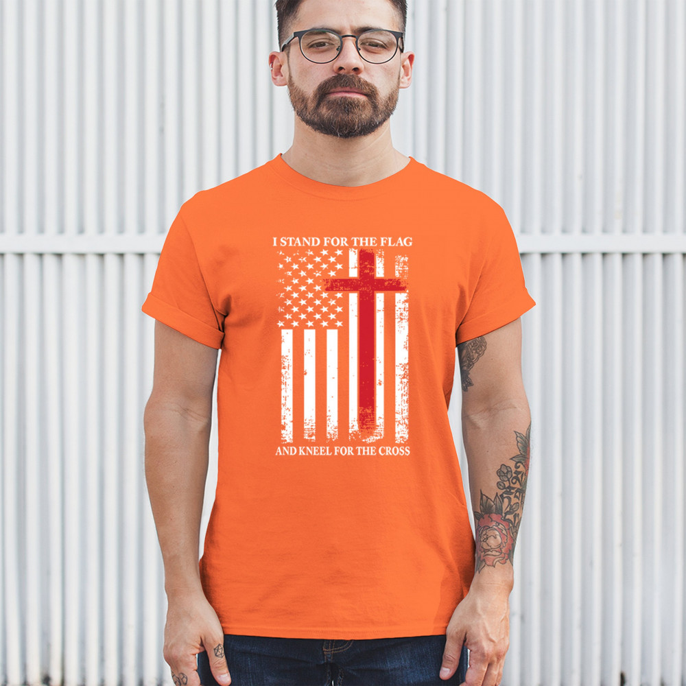 Celebrate faith and country with our Stand for the Flag Kneel for the Cross design. Featuring iconic symbols like the American flag and the Punisher emblem, this shirt is a testament to Christian principles and patriotism. A must-have for those seeking Trump merchandise and expressing unwavering support for the military.